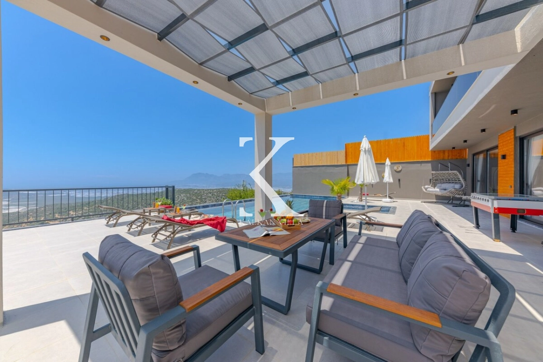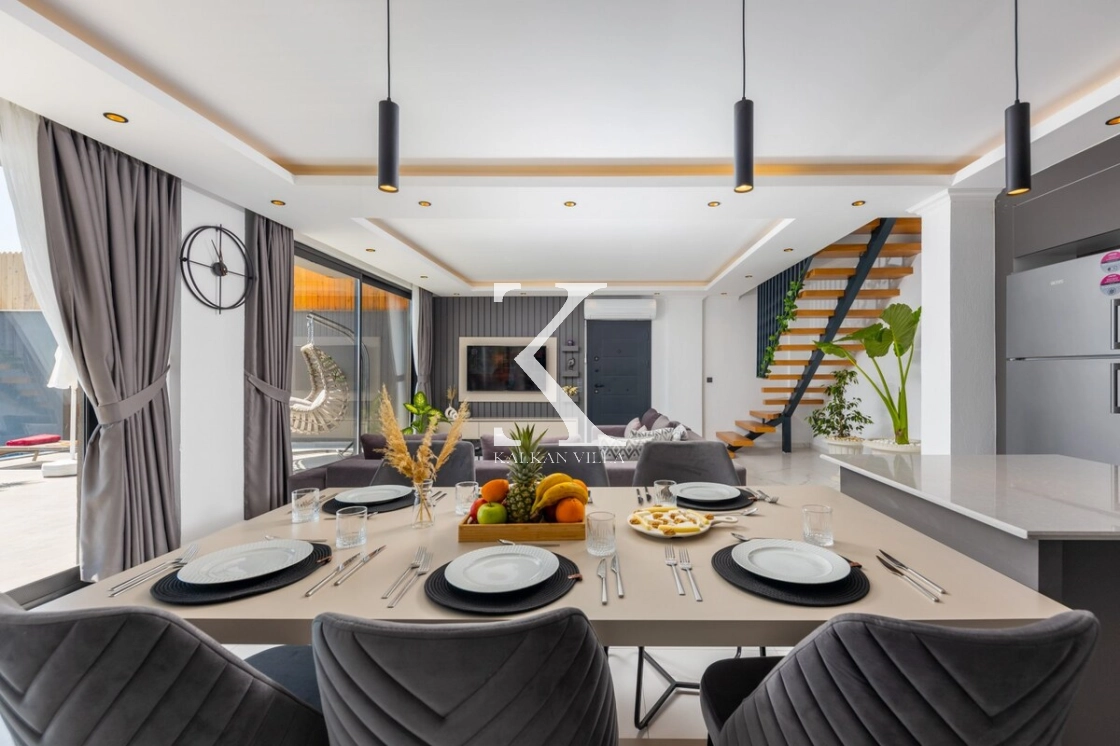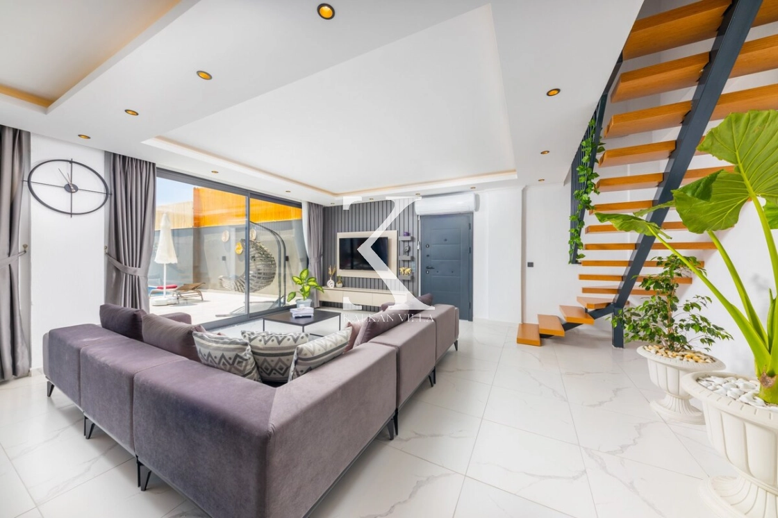 Modern ve estetik iç tasarımıyla dikkat çeken villa, huzurlu bir atmosferde keyifli bir tatil geçirmeniz için özenle hazırlanmıştır. Şehir gürültüsünden uzak konumu sayesinde doğanın sakinliği eşliğinde dinlenebilir, sevdiklerinizle birlikte kaliteli zaman geçirebilirsiniz.