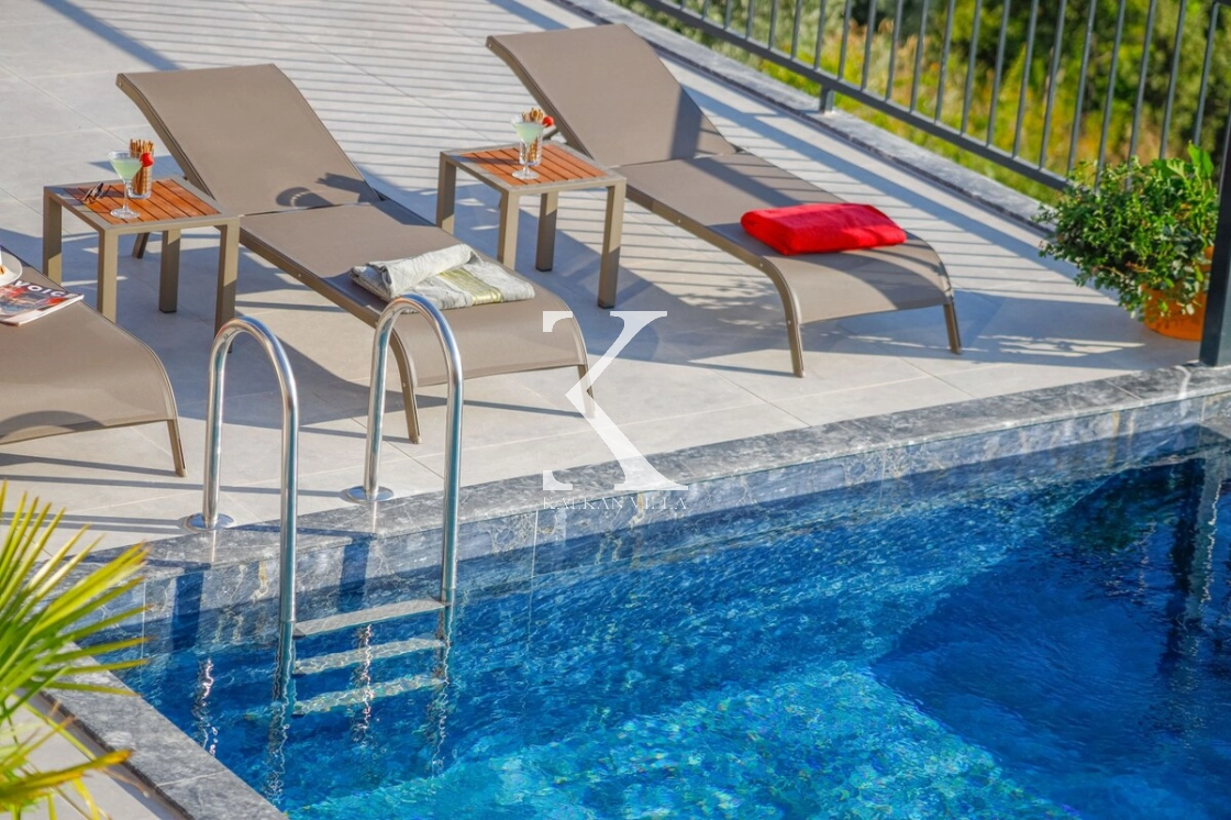 Villanın tamamen korunaklı havuz terası, mahremiyetine önem veren misafirler için özel olarak tasarlanmıştır. Bu özelliği sayesinde özellikle muhafazakâr aileler için oldukça uygun bir tatil ortamı sunmaktadır.