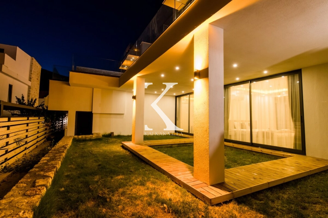 Villamızın şık terasında, özel yüzme havuzu, salıncak, yemek masası ve rahat oturma alanı bulunmaktadır.