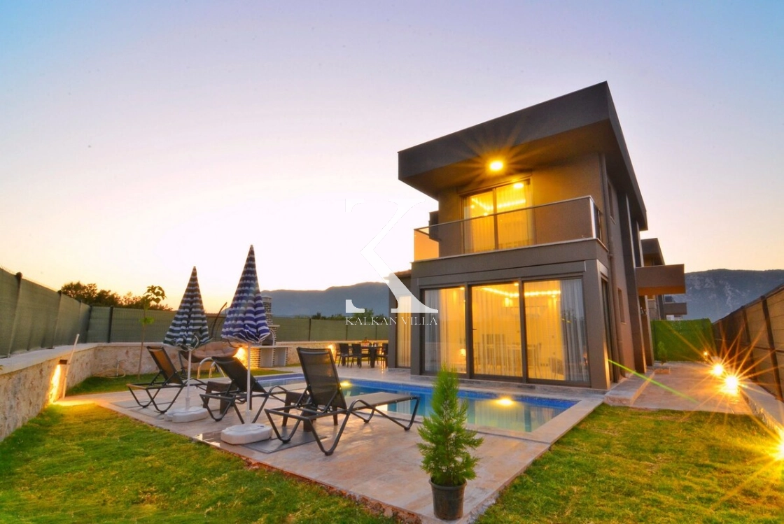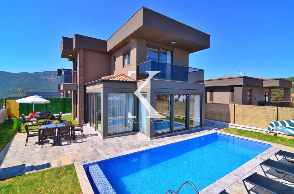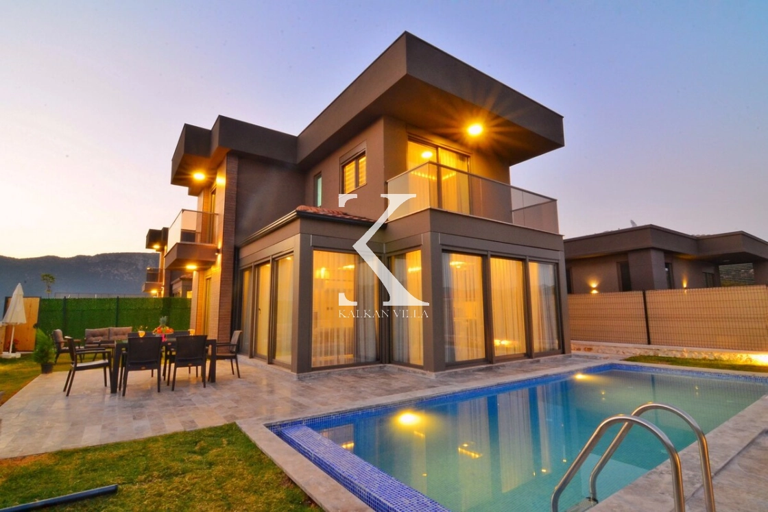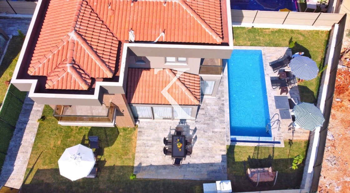 Villa, modern mimari anlayışla tasarlanmış ferah yaşam alanlarına sahiptir.