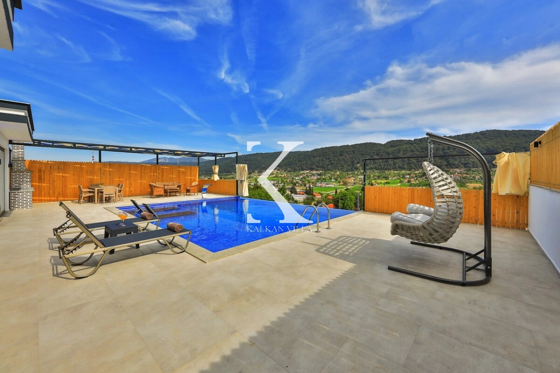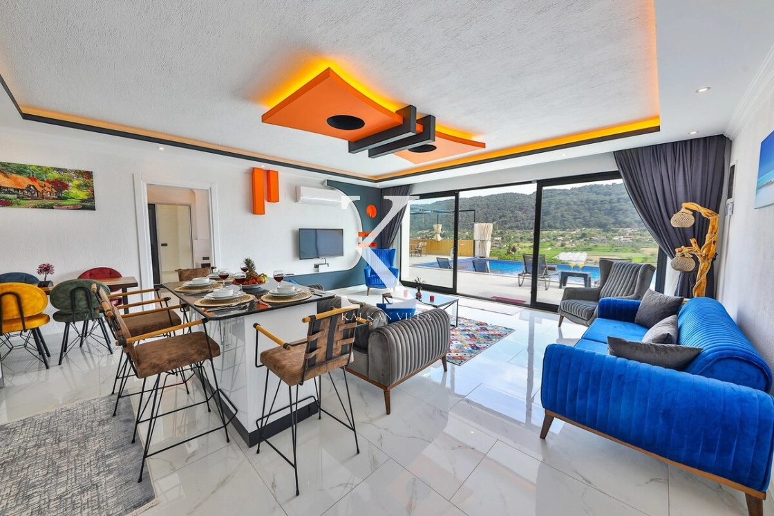 Modern mobilyalarla dekore edilmiş geniş salonu, tam donanımlı mutfağı ve doğa manzaralı havuz terasıyla Villa Ela Exclusive, doğanın içinde lüks bir tatil deneyimi sunar.