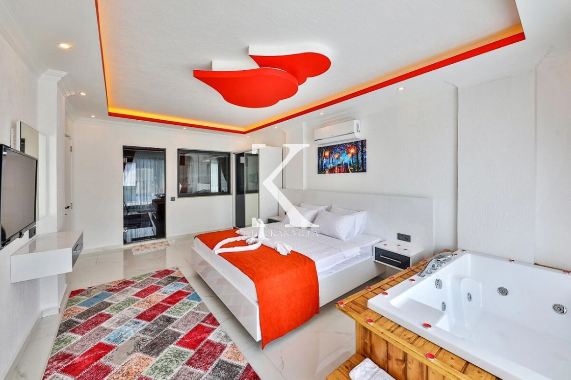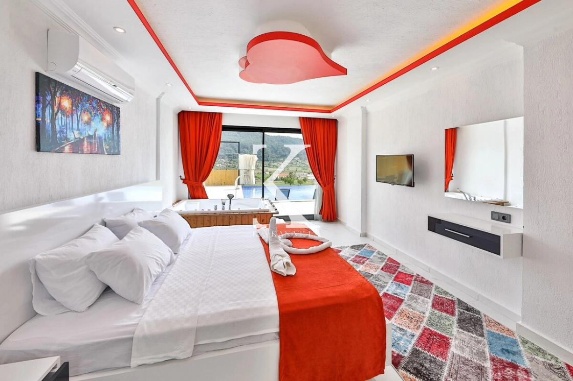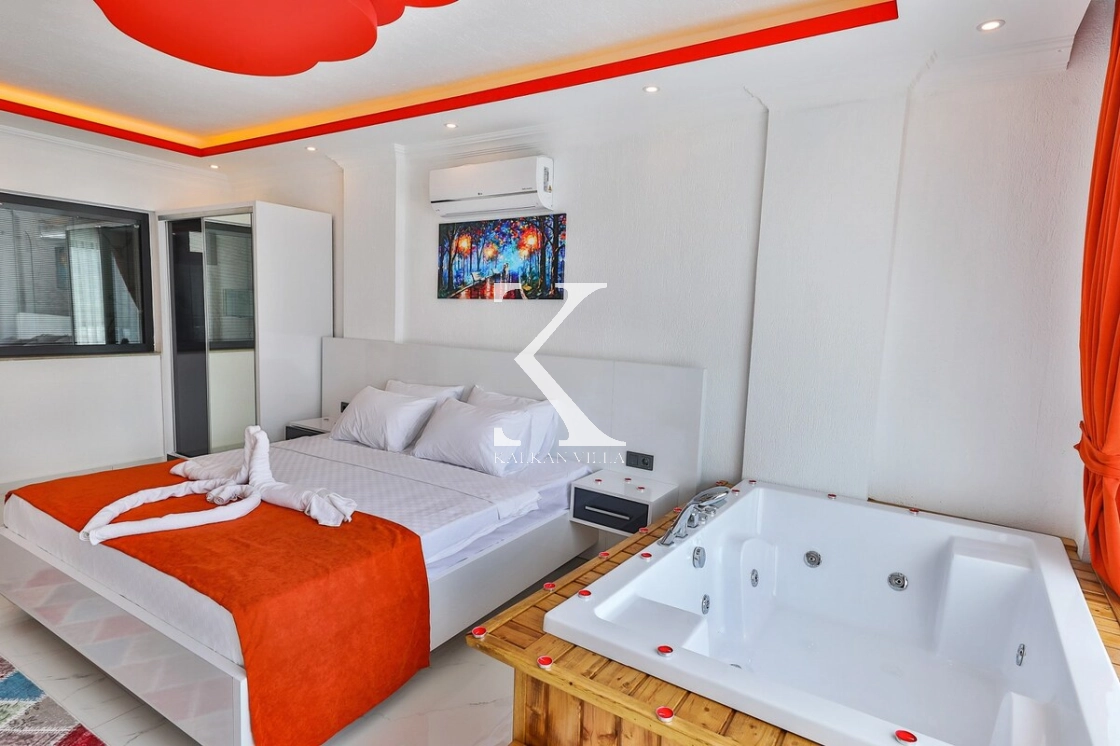 Çift kişilik yatak, klima, TV, jakuzi, makyaj masası, elbise dolabı, banyo & tuvalet