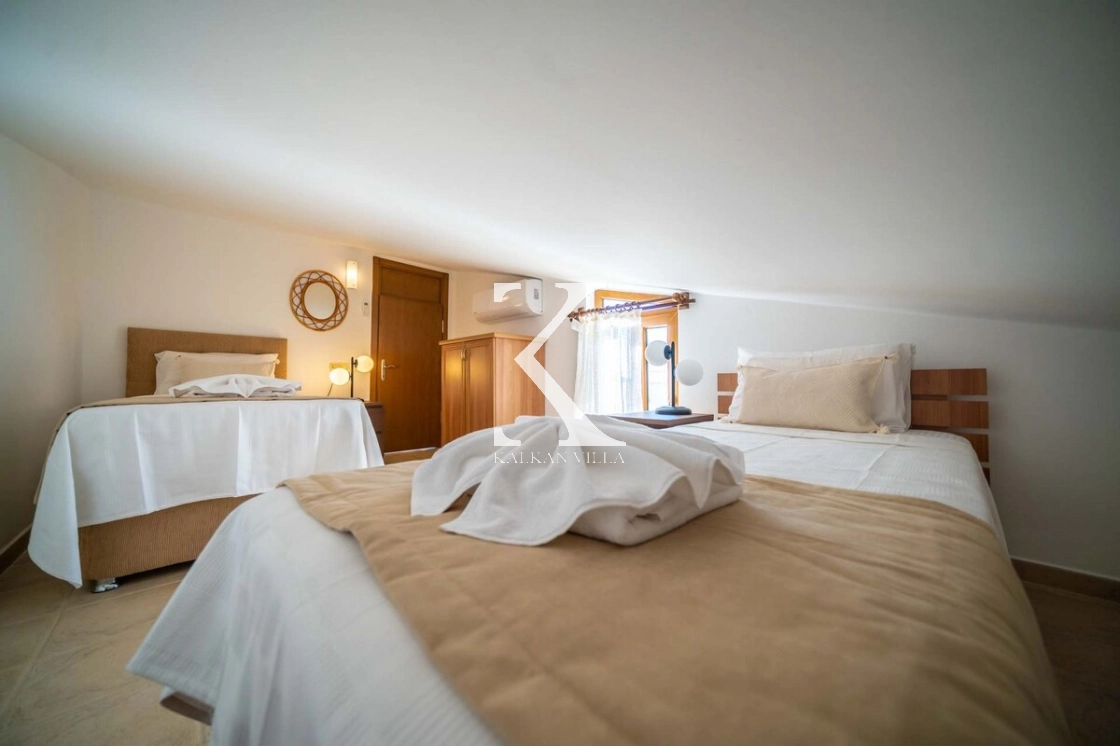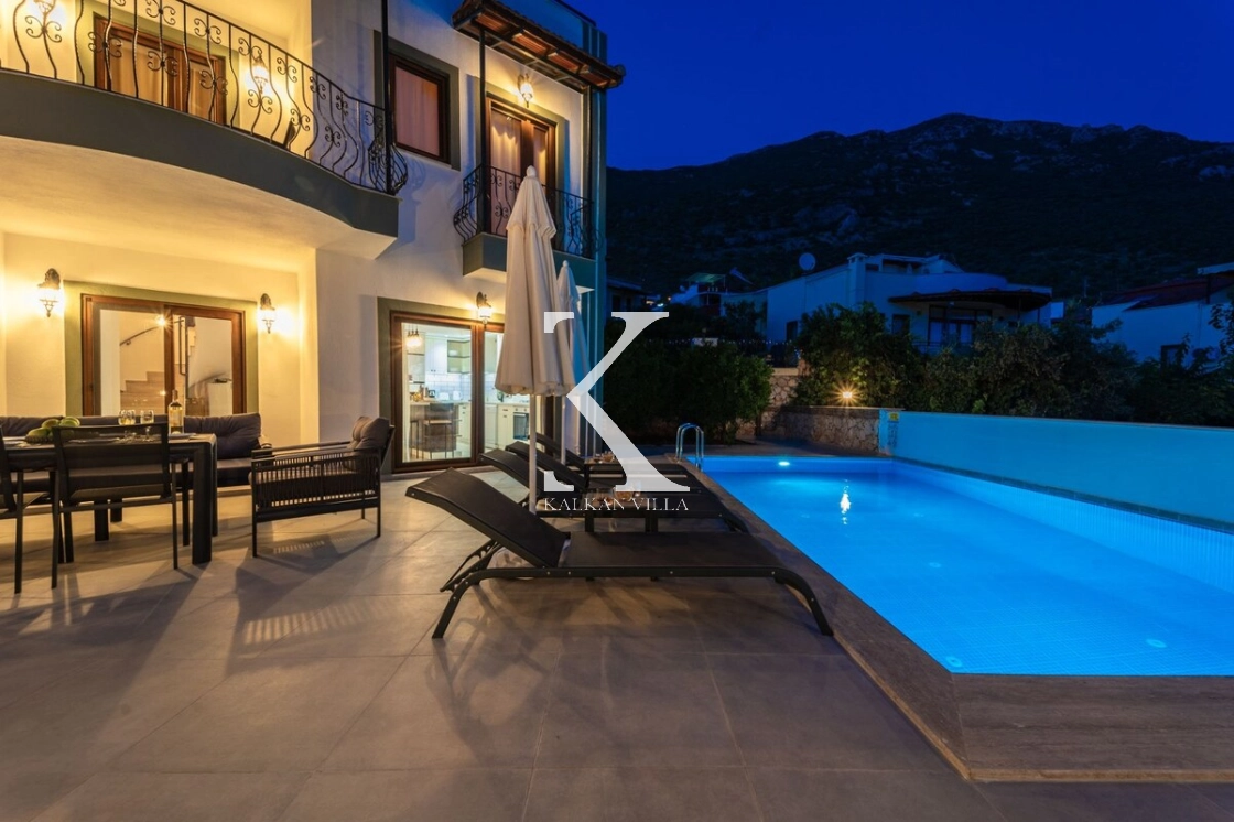 Geniş terasında yer alan özel yüzme havuzu, şezlonglar, oturma alanı ve barbekü bölümü, açık havada keyifli anlar yaşamak için idealdir. Kalkan’ın merkezine yakın konumu sayesinde restoranlara, plajlara ve alışveriş noktalarına kolayca ulaşabilirsiniz.