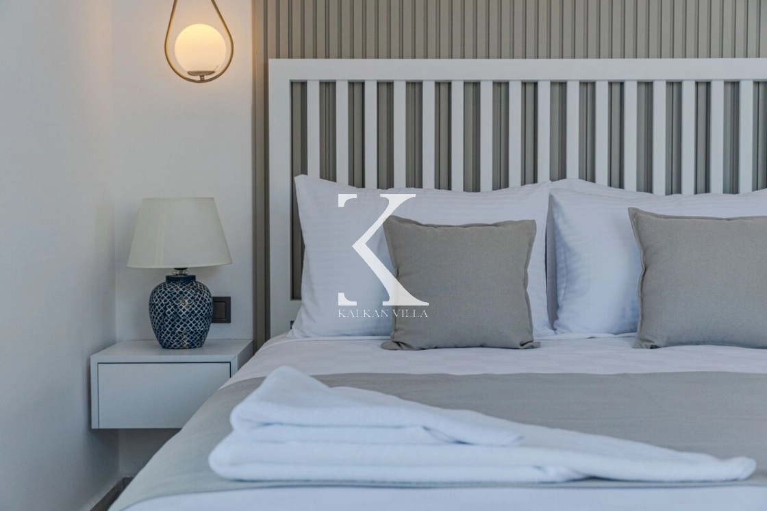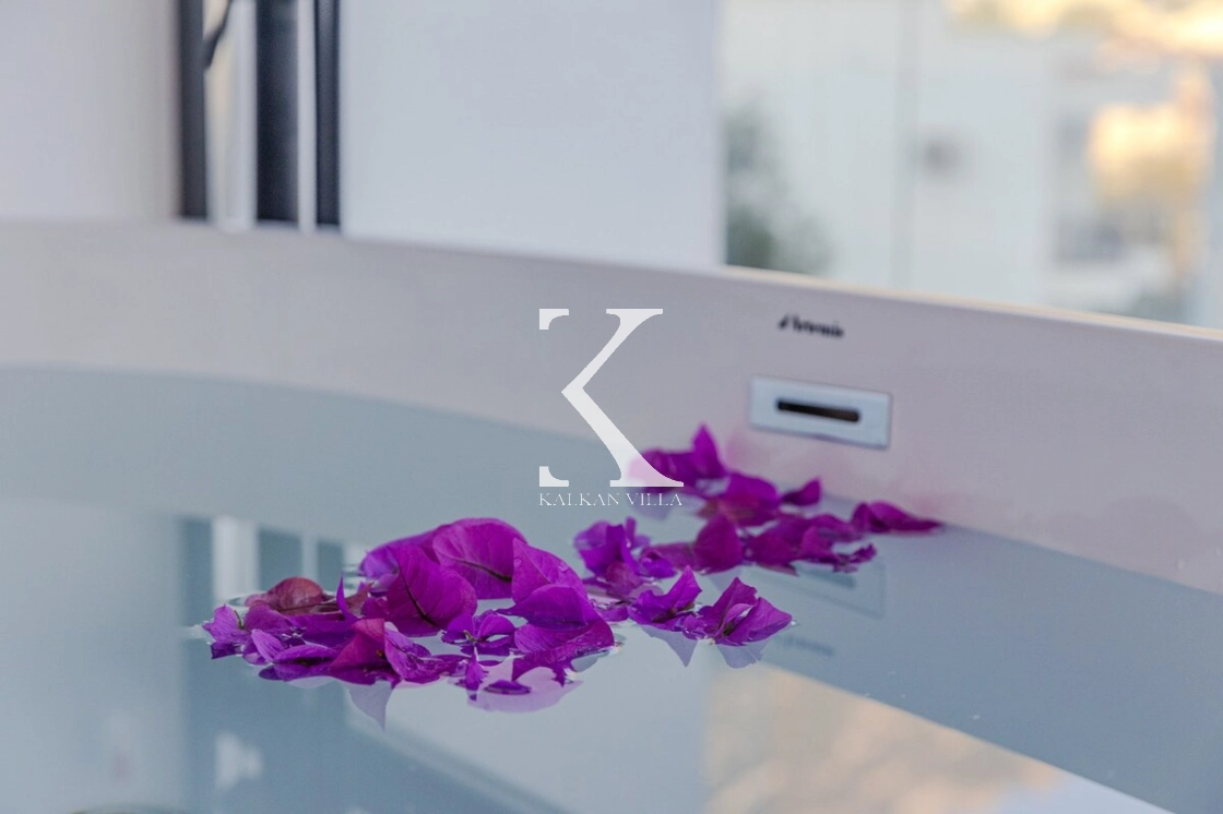 Modern mimarisi ve zarif dekorasyonu ile dikkat çeken Villa Emporium, misafirlerine hem estetik hem de konforlu bir yaşam alanı sunar. Villanın en etkileyici özelliklerinden biri ise panoramik deniz manzarası ve büyüleyici gün batımı manzarasıdır. Günün her saatinde eşsiz manzaranın keyfini çıkarabilir, özellikle gün batımında unutulmaz anlar yaşayabilirsiniz.