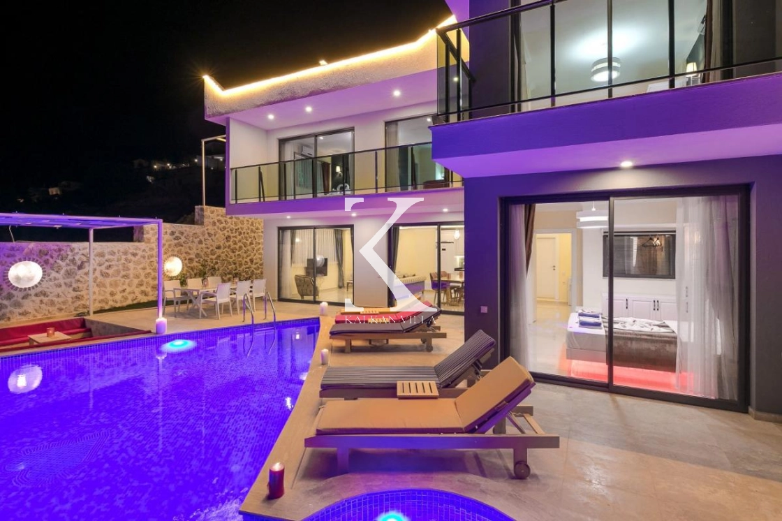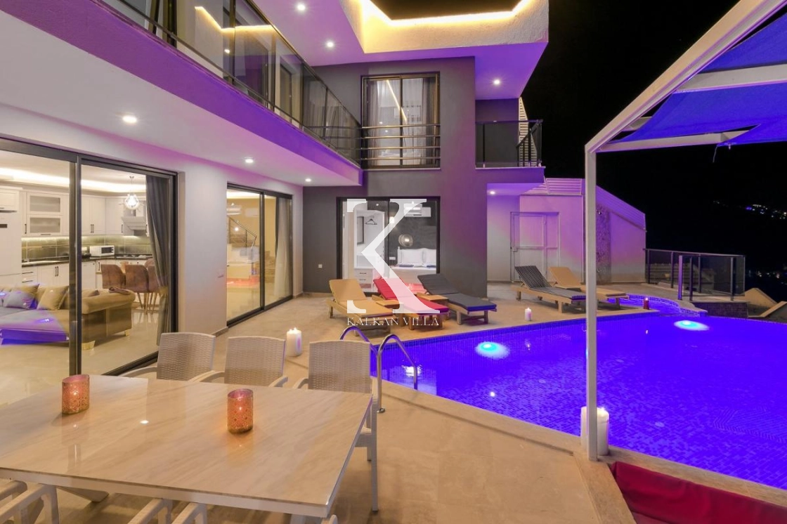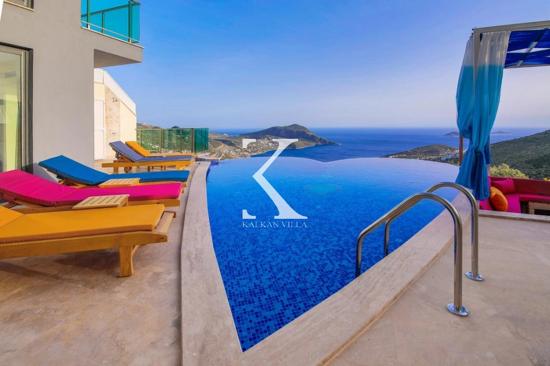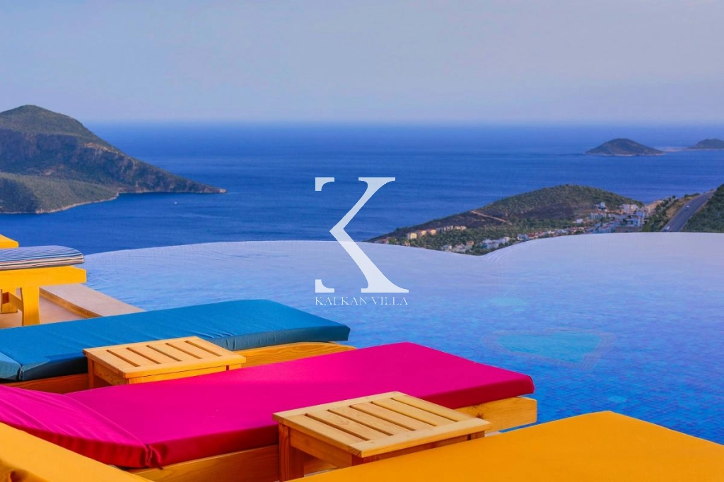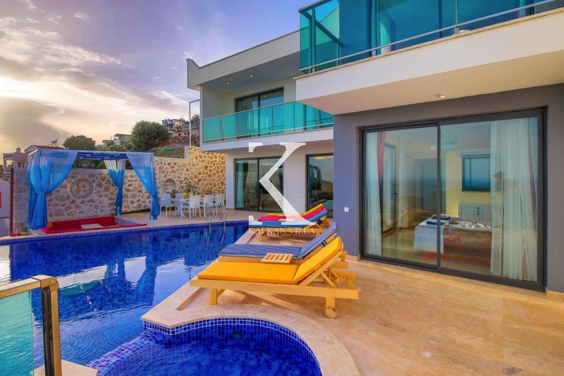 Kalkan’ın gözde bölgelerinden Akbel’de yer alan Villa Firuze, modern mimarisi, kalp şeklindeki özel havuzu ve büyüleyici panoramik deniz manzarasıyla öne çıkan lüks bir tatil villasıdır.