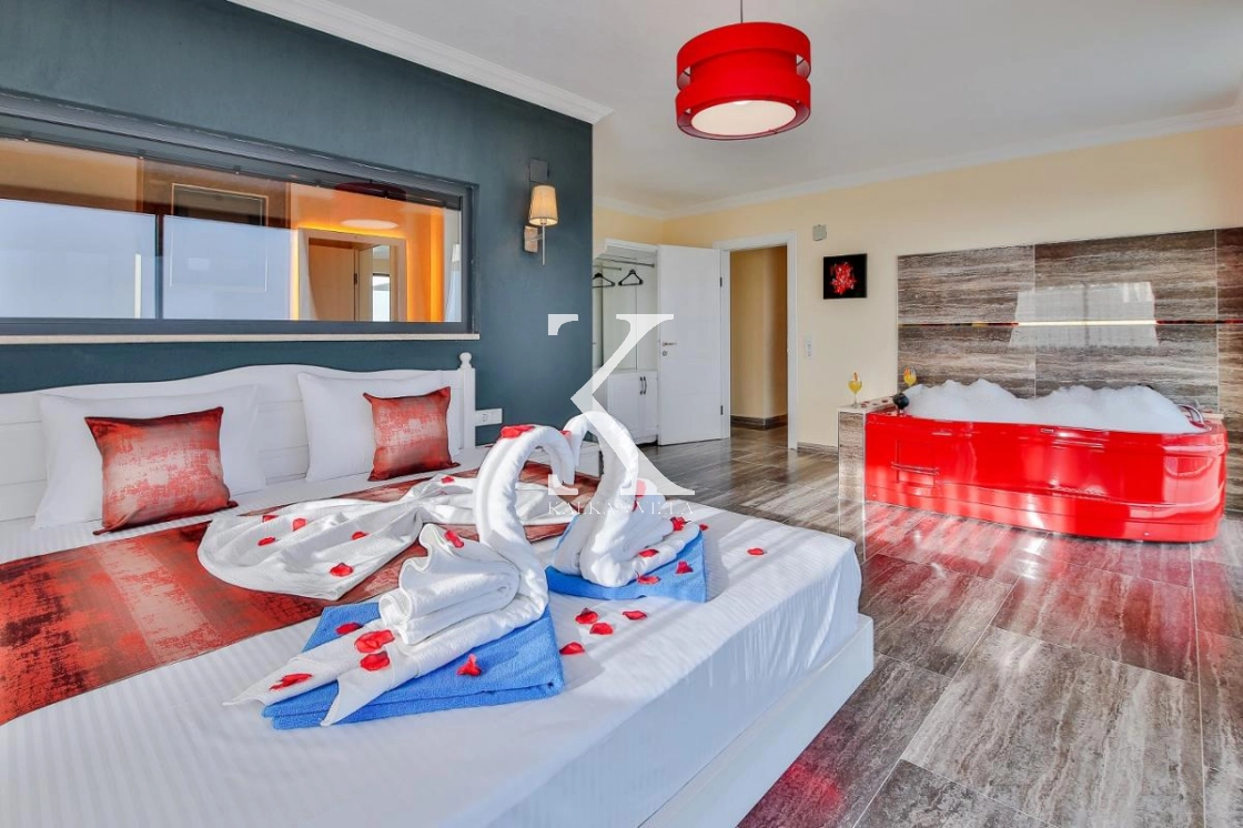 1. Yatak Odası: Çift kişilik yatak, jakuzi, elbise dolabı, klima, banyo & tuvalet, havuz terasına çıkış