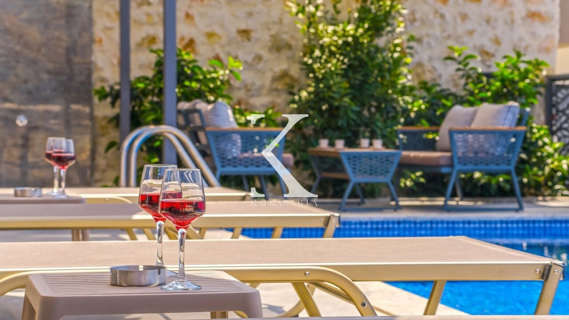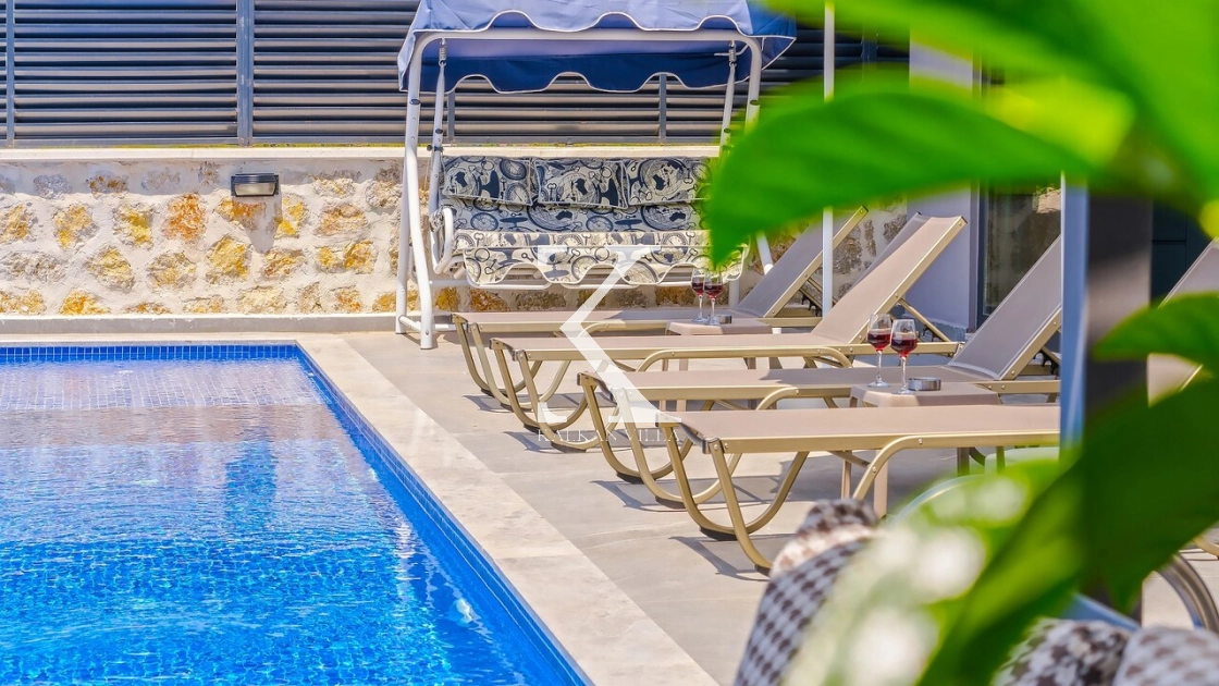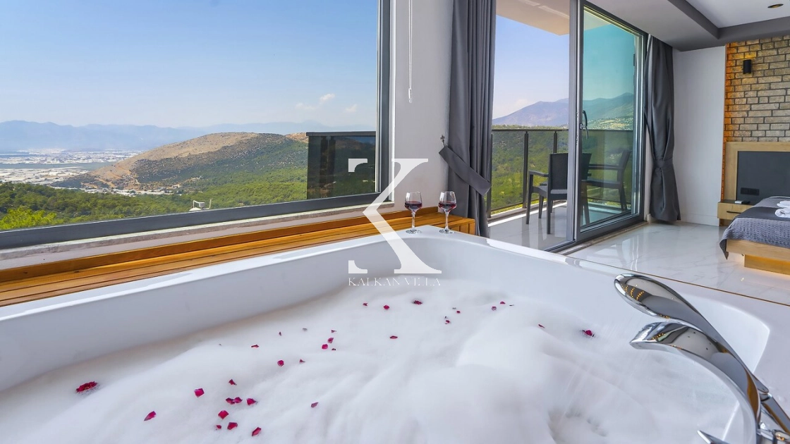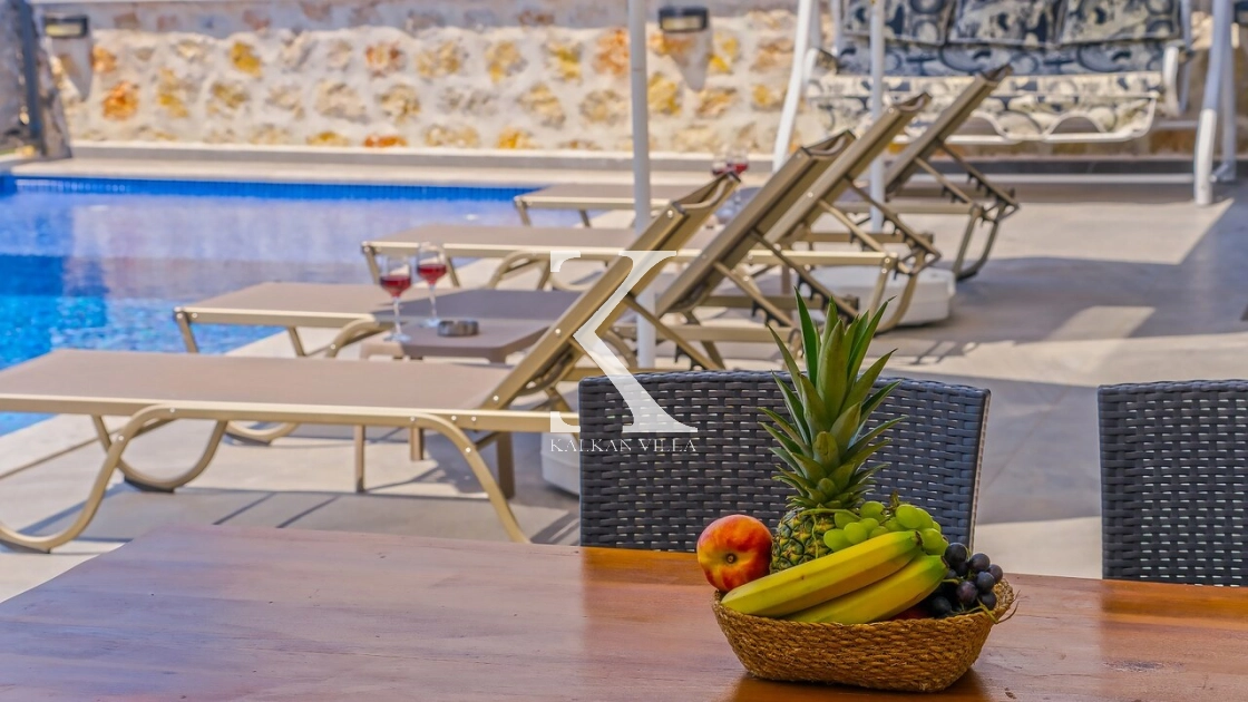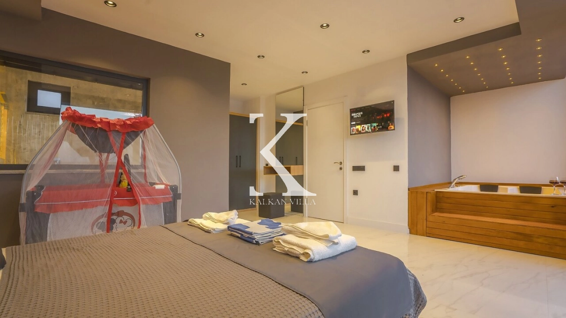 Villanın ana yatak odasında jakuzi, dışarıdan görünmeyen korunaklı havuz terası, geniş bahçesi ve dinlenme alanları bulunur.
