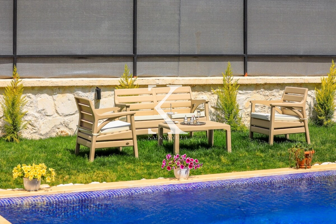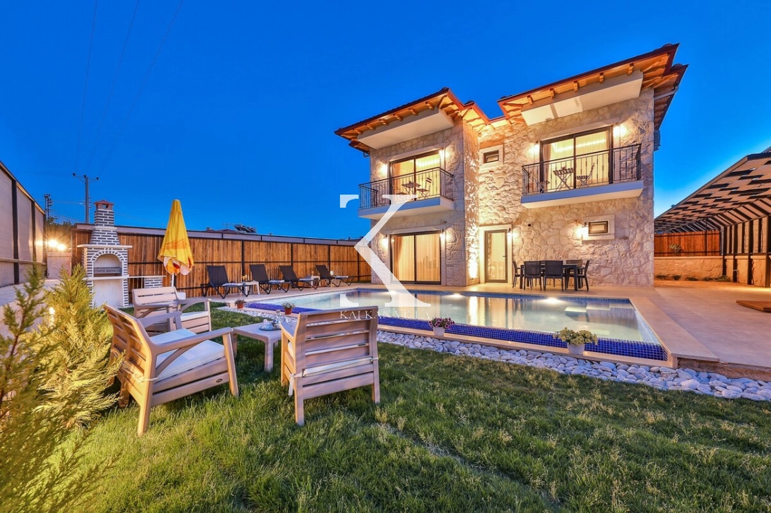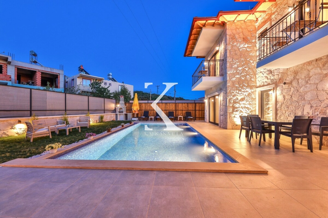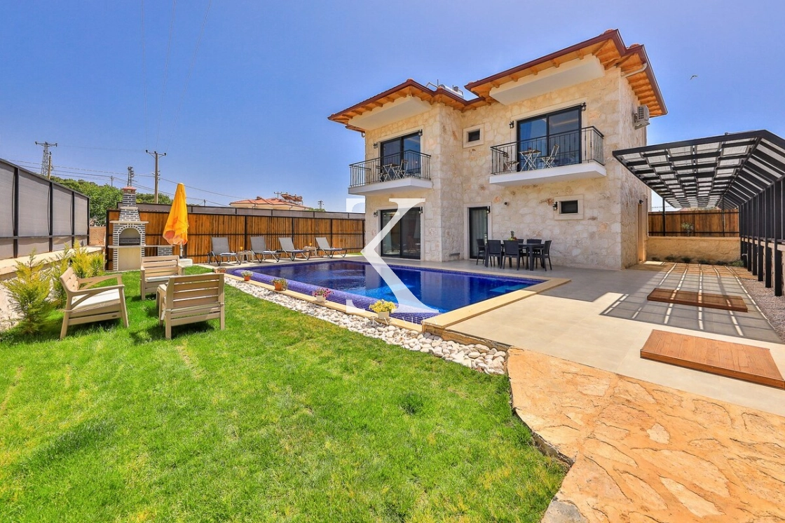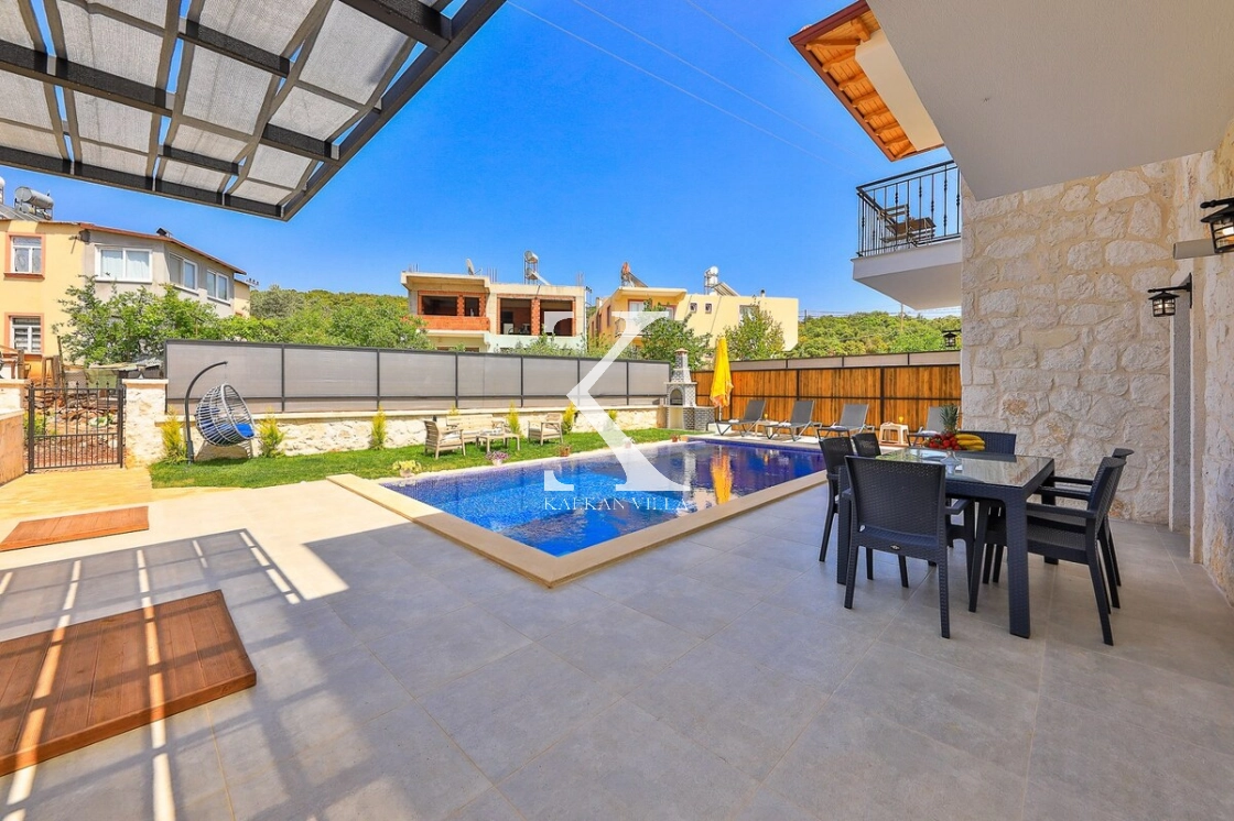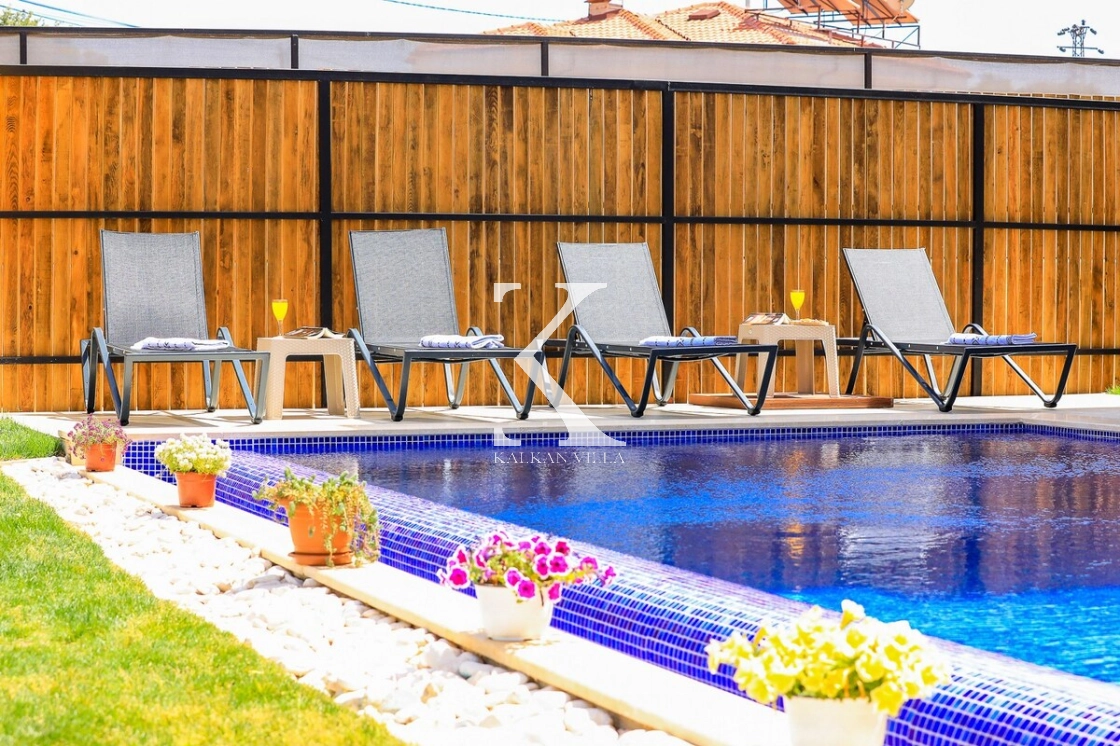 Villa Kaşlı’nın geniş ve kullanışlı bahçesinde yer alan özel yüzme havuzu, oturma alanı, yemek masası ve barbekü bölümü, sevdiklerinizle birlikte keyifli vakit geçirmeniz için ideal bir ortam sunar. Modern ve şık iç dekorasyonu sayesinde villa, konforlu bir yaşam alanı sunarak tatilinizi daha keyifli hale getirir.