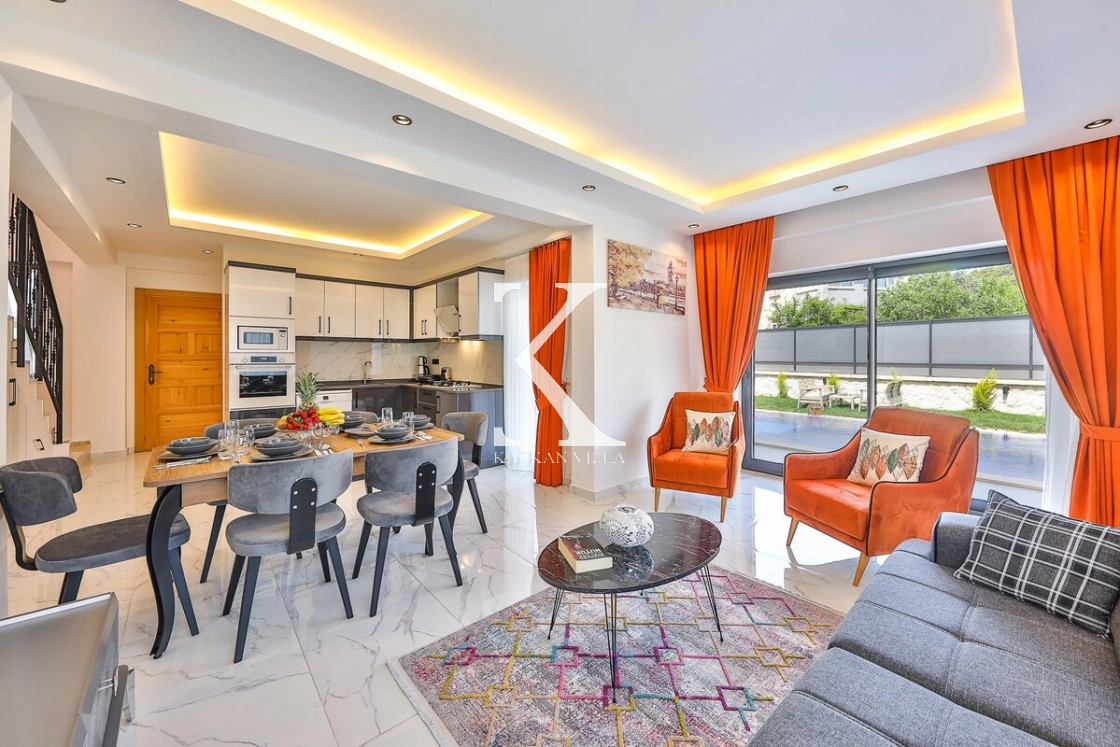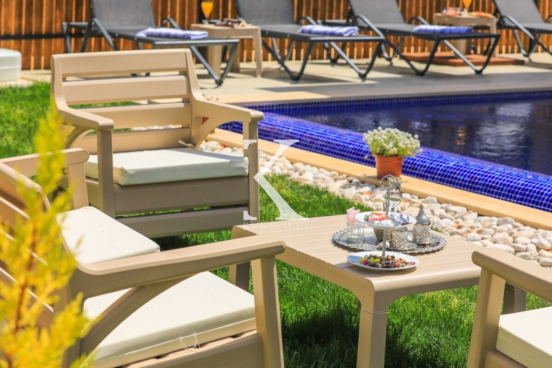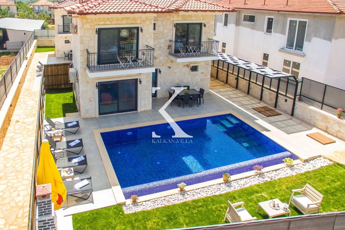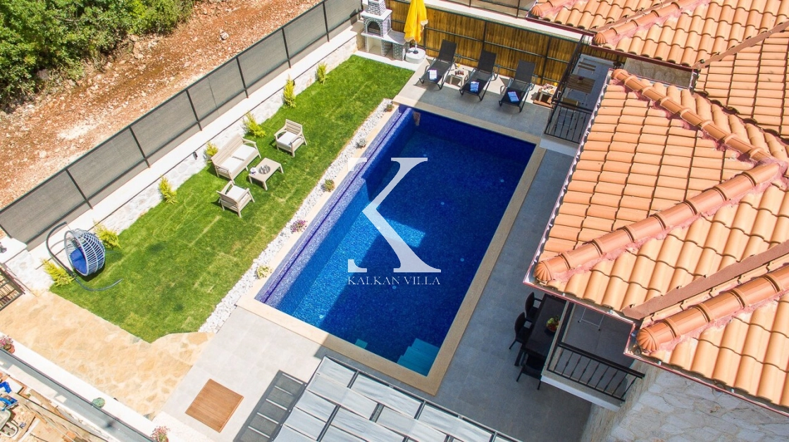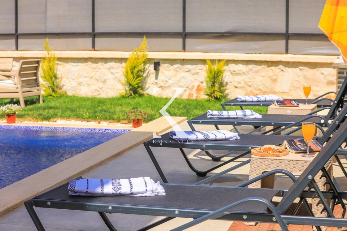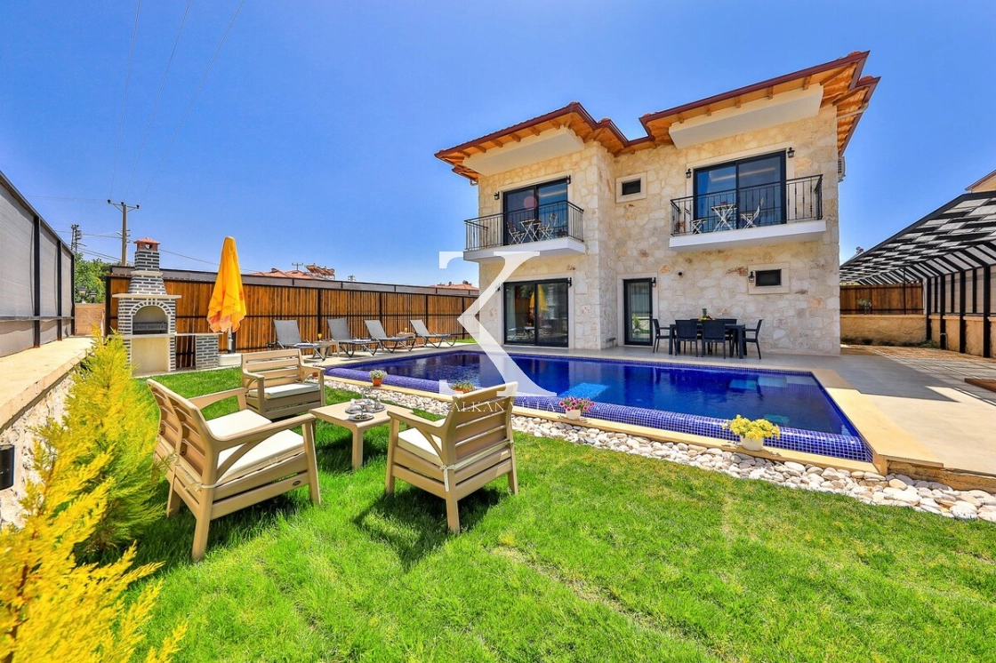 Villa Kaşlı’nın geniş ve kullanışlı bahçesinde yer alan özel yüzme havuzu, oturma alanı, yemek masası ve barbekü bölümü, sevdiklerinizle birlikte keyifli vakit geçirmeniz için ideal bir ortam sunar. Modern ve şık iç dekorasyonu sayesinde villa, konforlu bir yaşam alanı sunarak tatilinizi daha keyifli hale getirir.