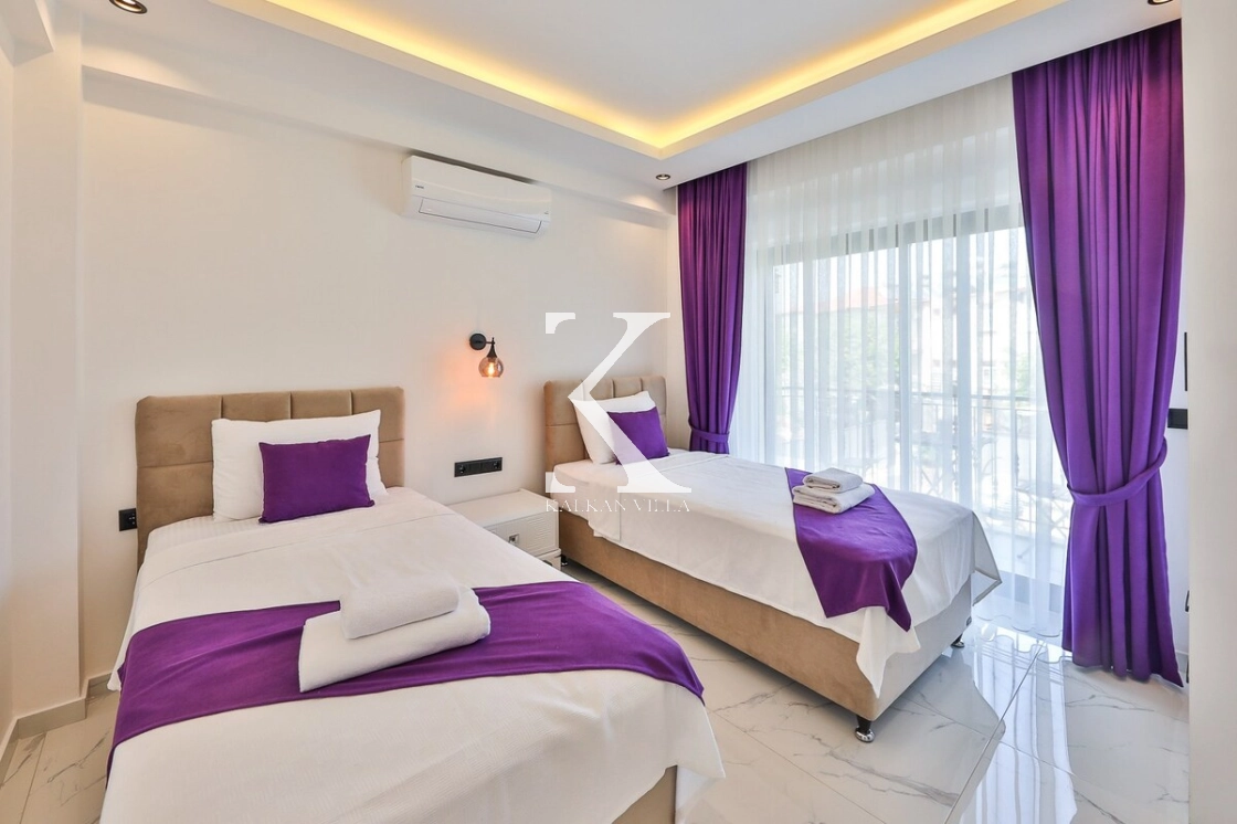 2 adet tek kişilik yatak, elbise dolabı, makyaj masası, komodin, saç kurutma makinesi, klima, özel banyo ve tuvalet bulunmaktadır.