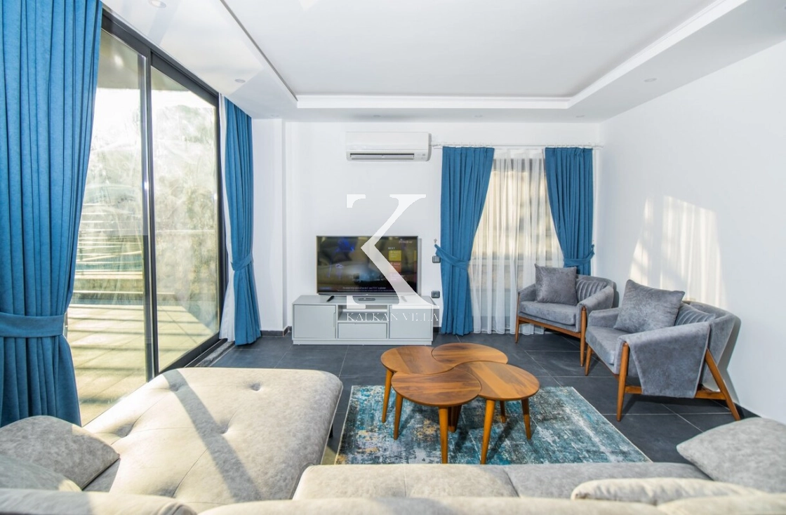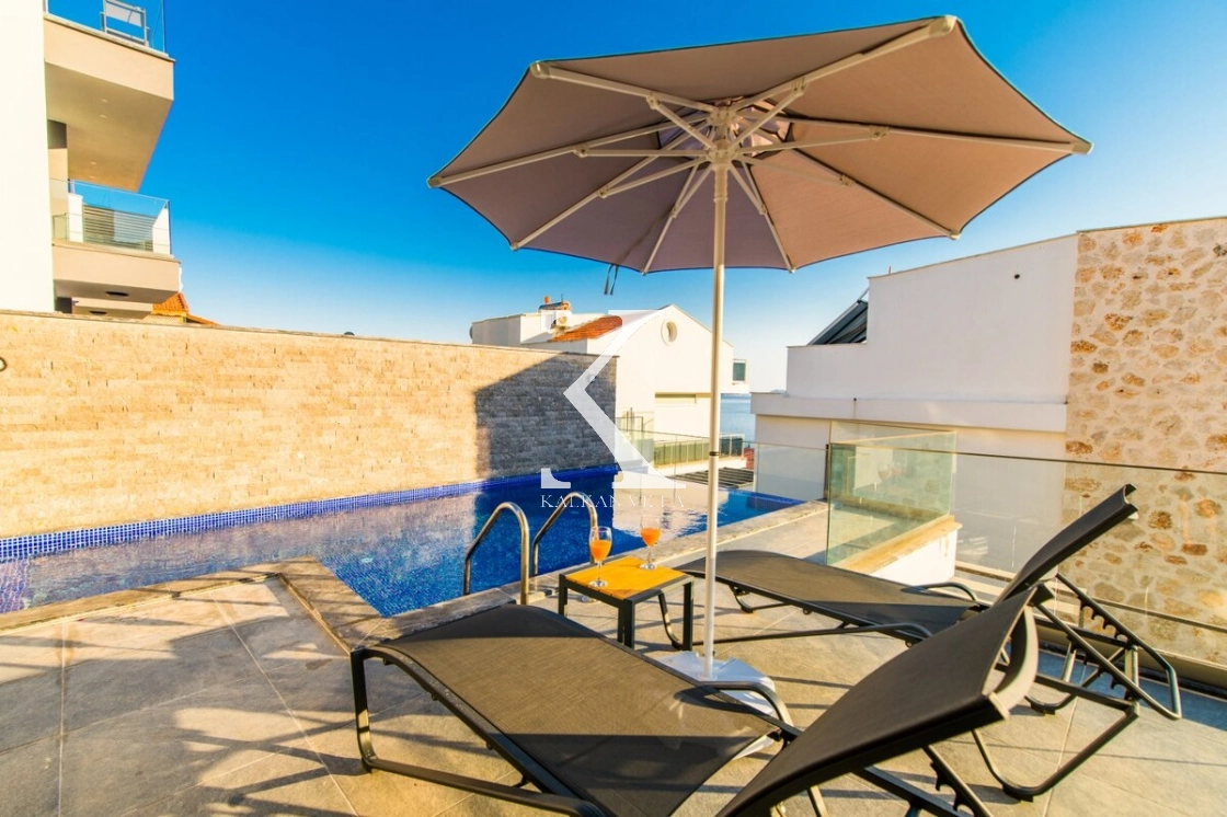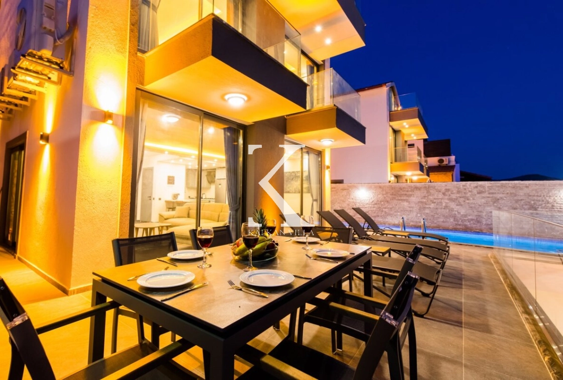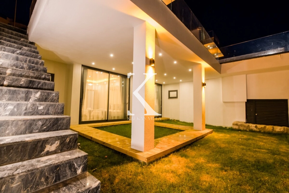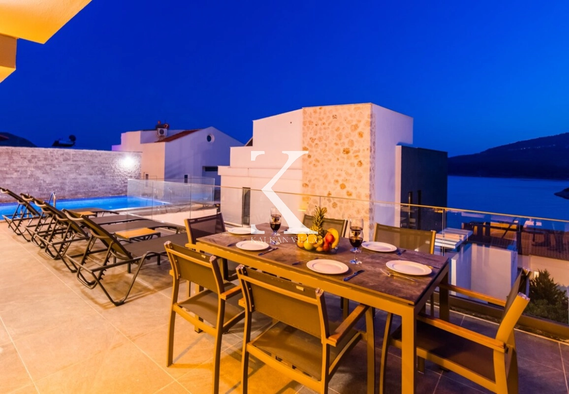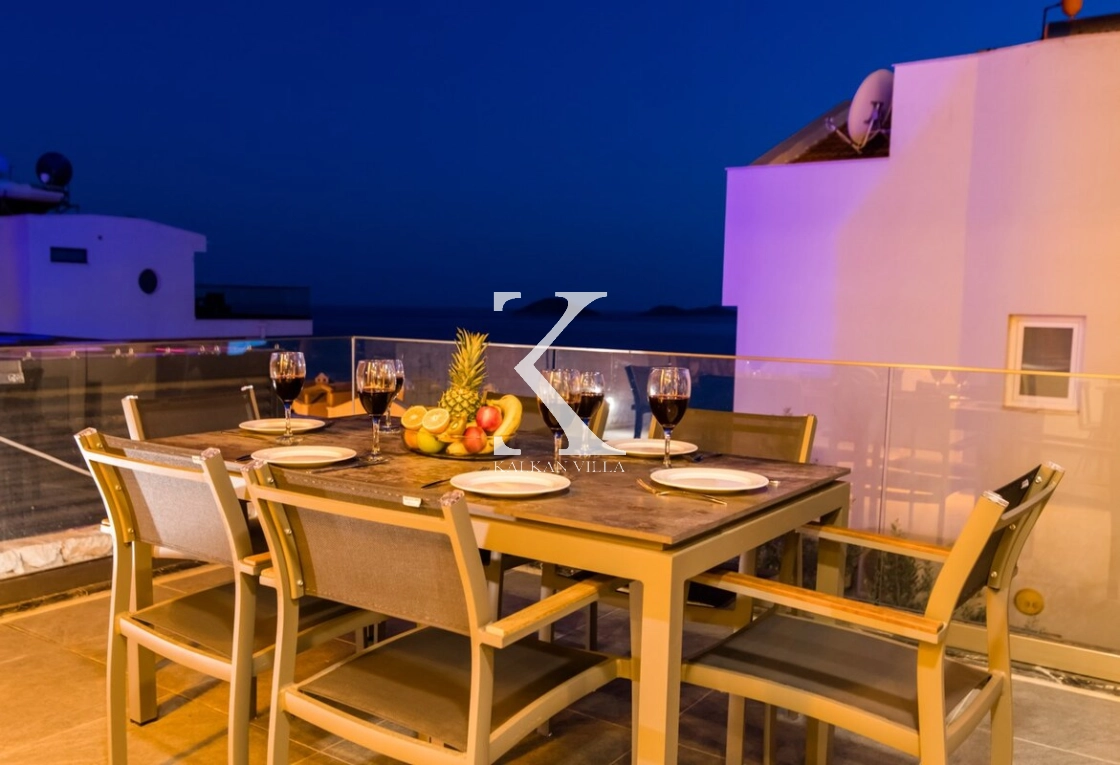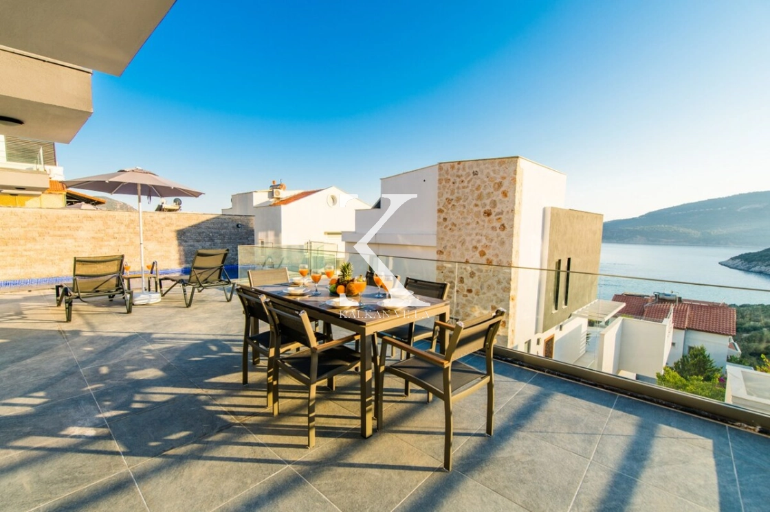 Modern ve ferah mimarisiyle dikkat çeken villa, deniz manzarası eşliğinde konforlu bir tatil sunar.