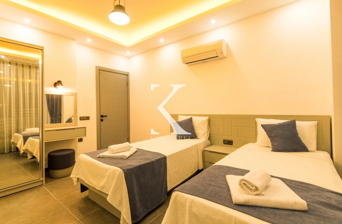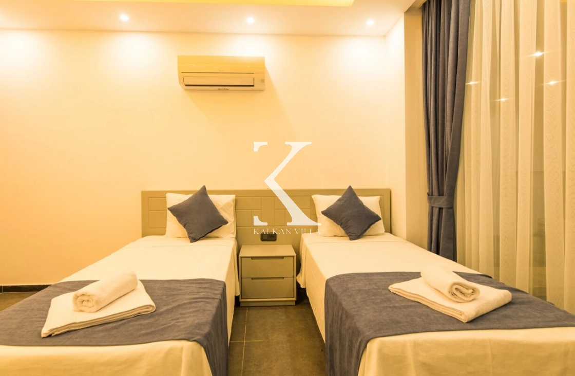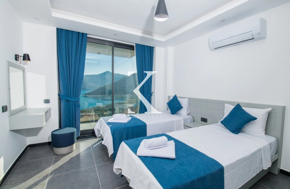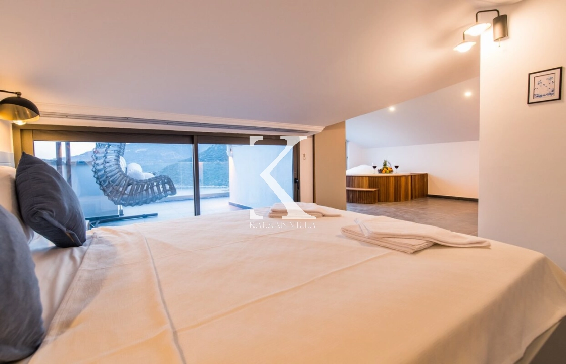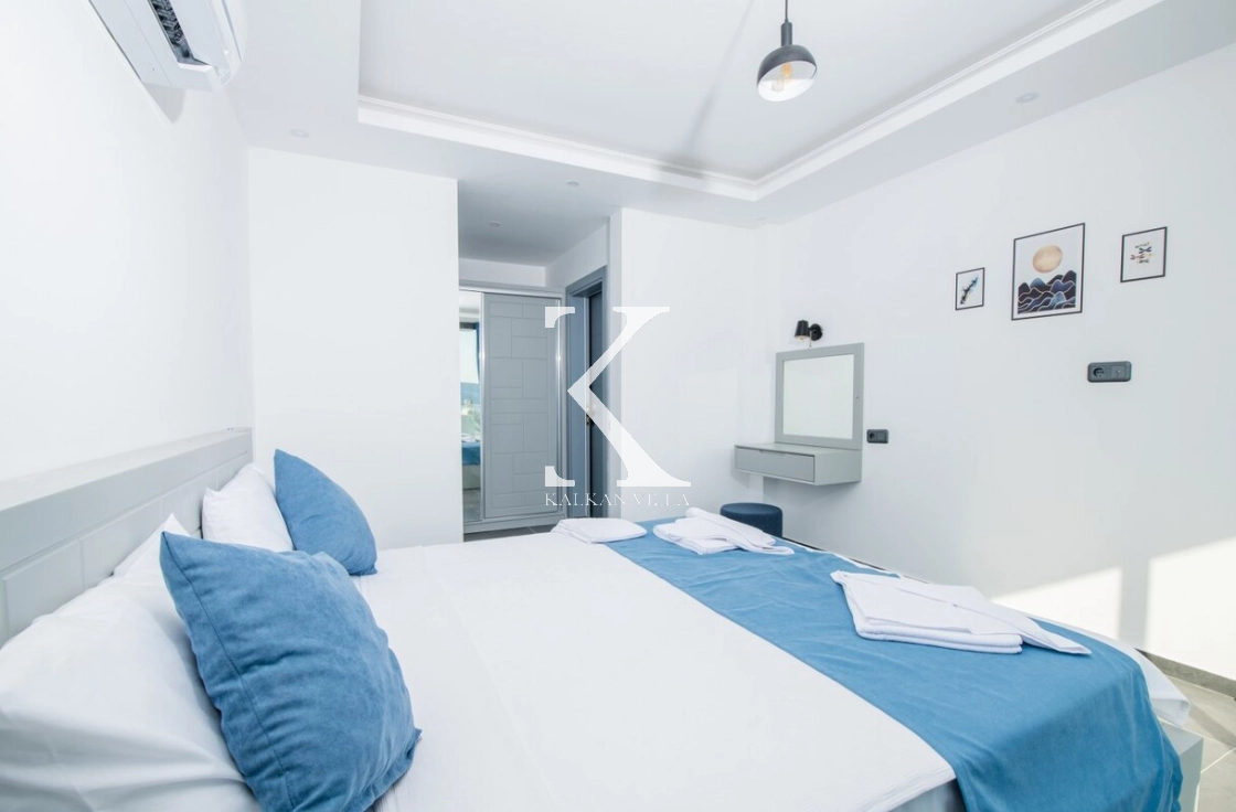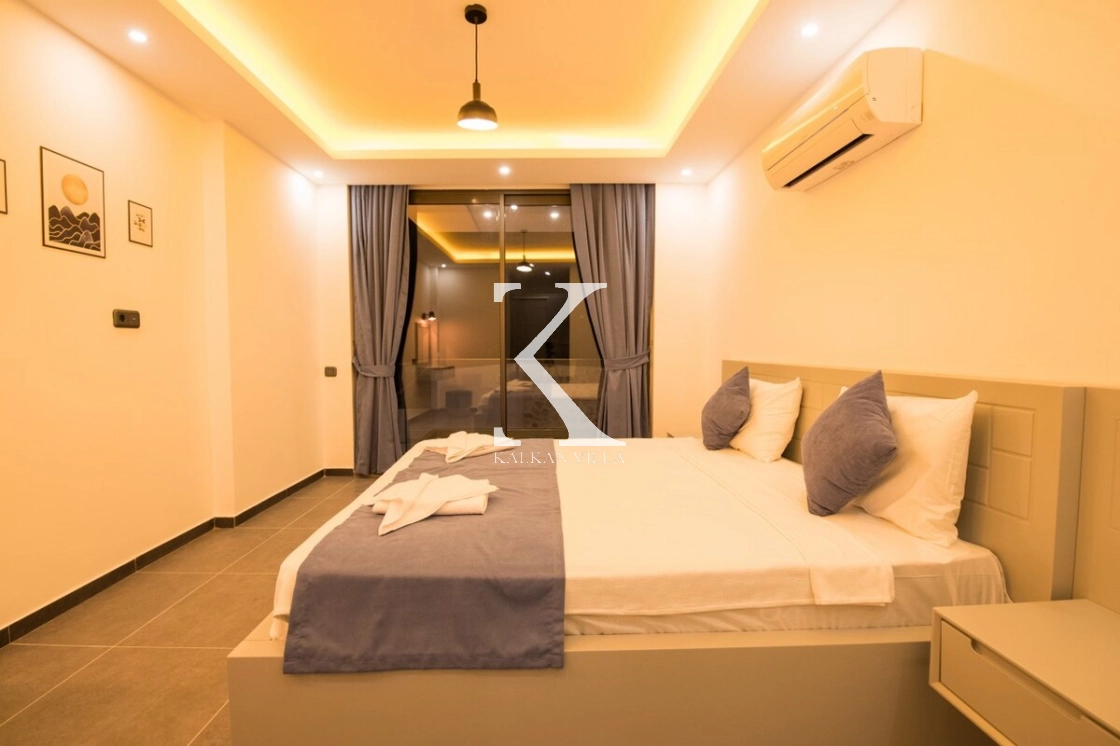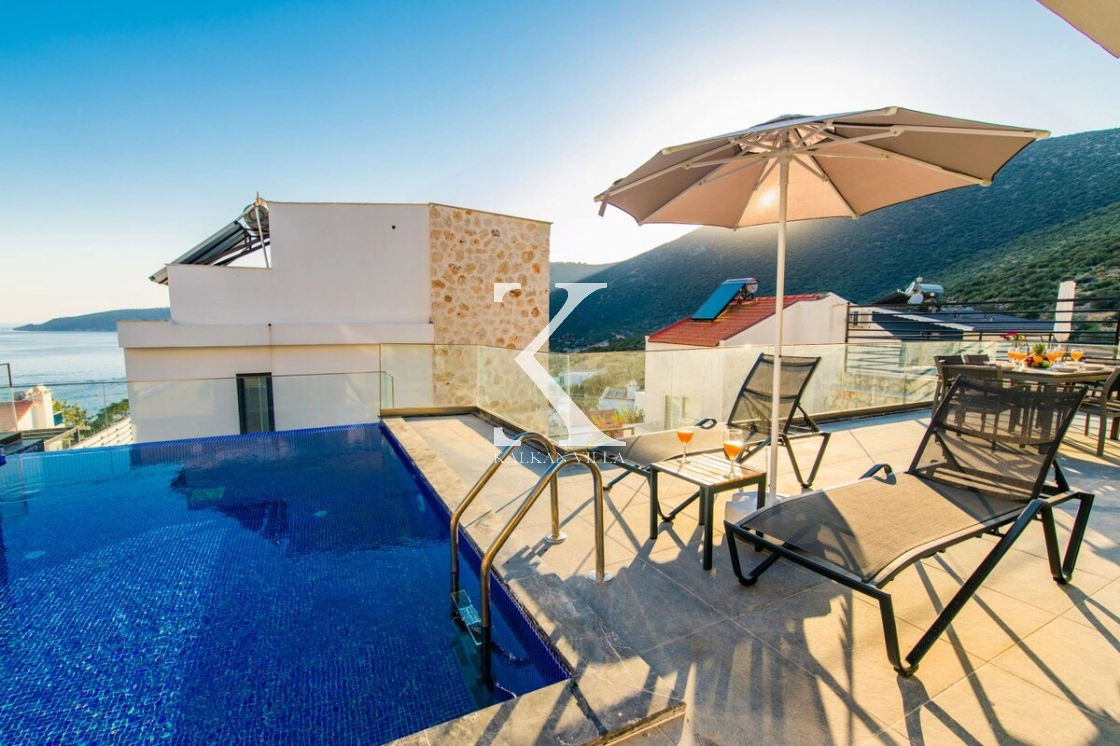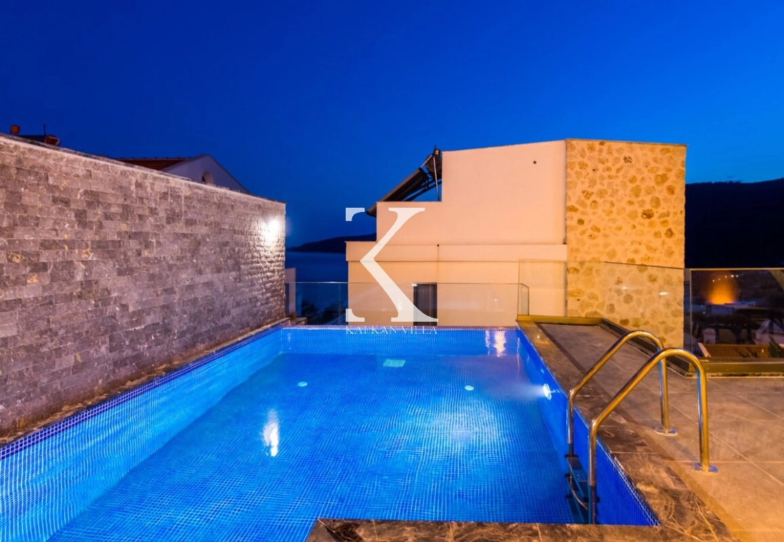 Modern ve ferah mimarisiyle dikkat çeken villa, deniz manzarası eşliğinde konforlu bir tatil sunar.