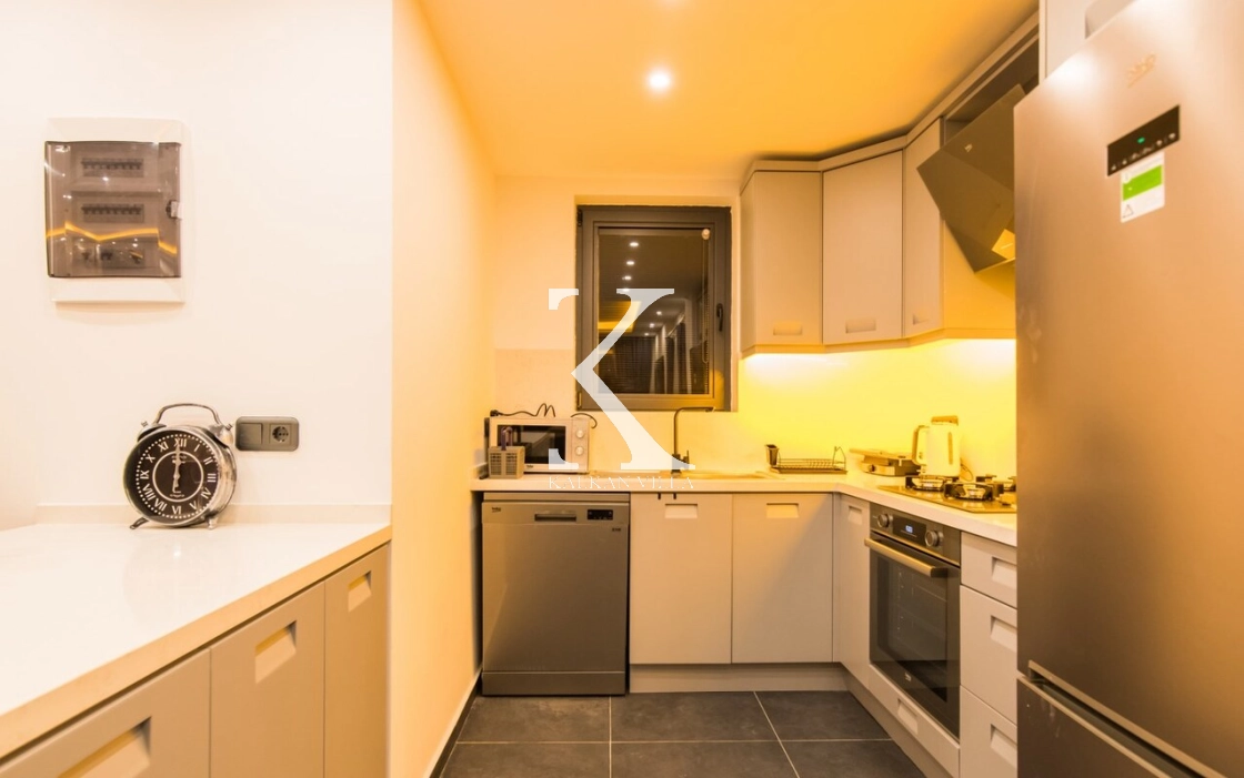Donanımlı Amerikan mutfakta; buzdolabı, bulaşık makinesi, fırın, ocak, mikrodalga fırın, elektrikli su ısıtıcısı, yemek masası, yemek takımları, çatal-bıçak takımları, tencere & tava seti ve bardaklar bulunmaktadır.