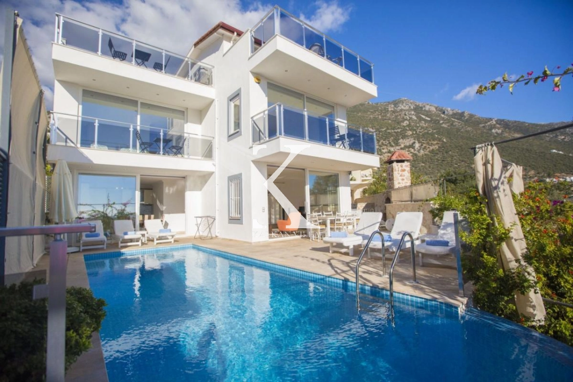 Villa Manolya Kalkan Ortaalan’da Deniz Manzaralı, Korunaklı ve 6 Kişilik Özel Tatil Villası