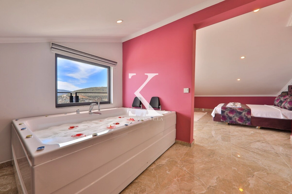 Geniş havuz terasında Kalkan’ın eşsiz manzarası ve güneşinin keyfini doyasıya çıkarabilir, villada yer alan 2 adet jakuzi ve sauna sayesinde tatilinizi hem dinlendirici hem de ayrıcalıklı hale getirebilirsiniz.