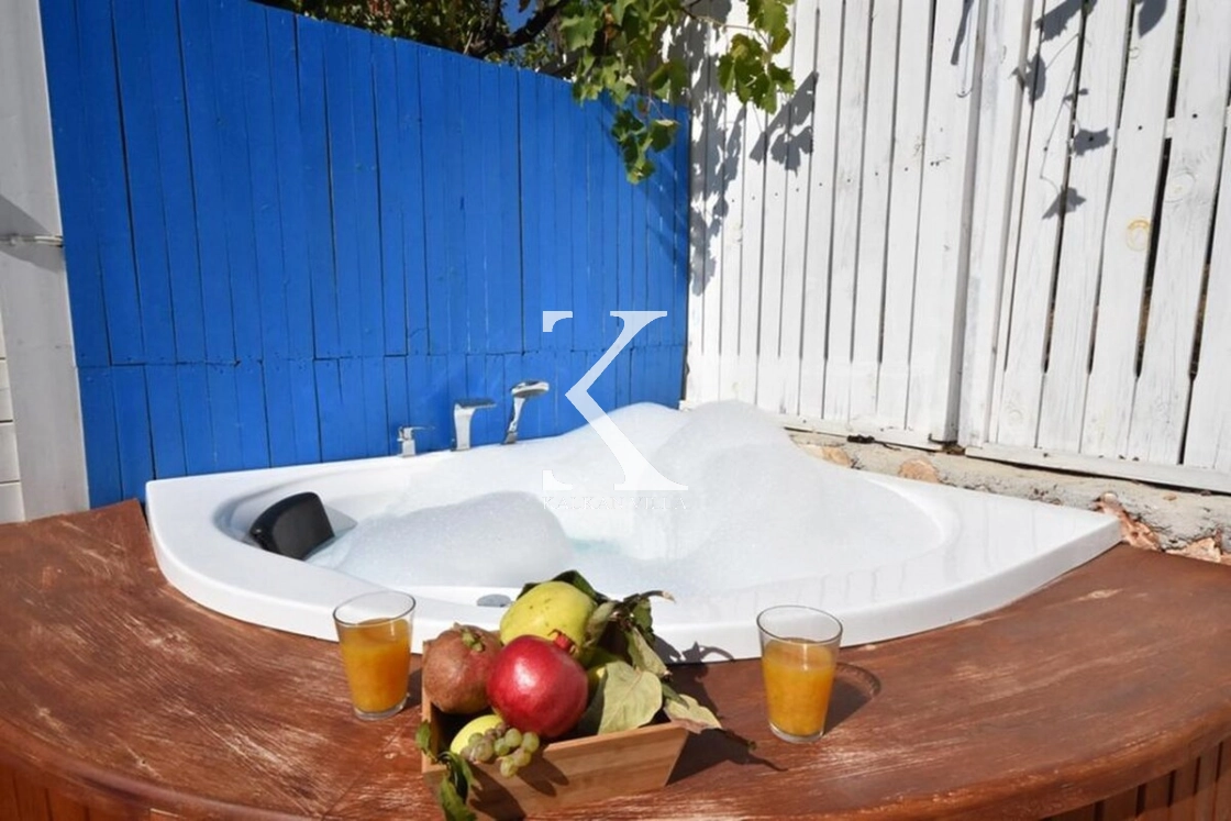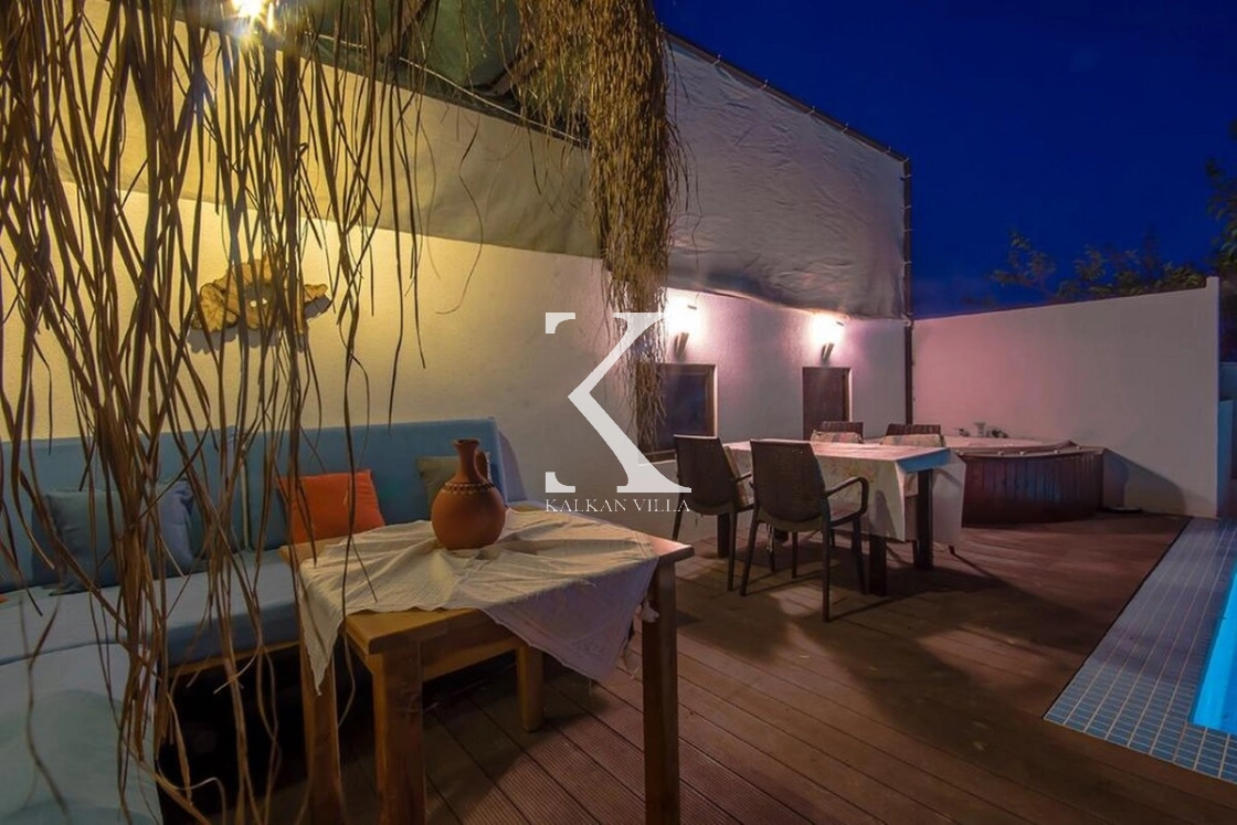 Doğanın huzur verici atmosferinde yer alan bahçede; özel yüzme havuzu, açık hava jakuzisi, oturma alanı, yemek masası ve barbekü bulunmaktadır.