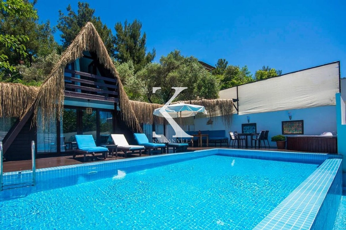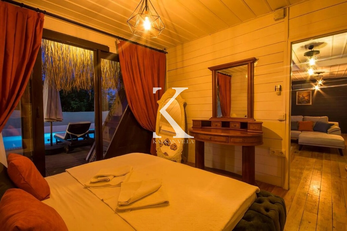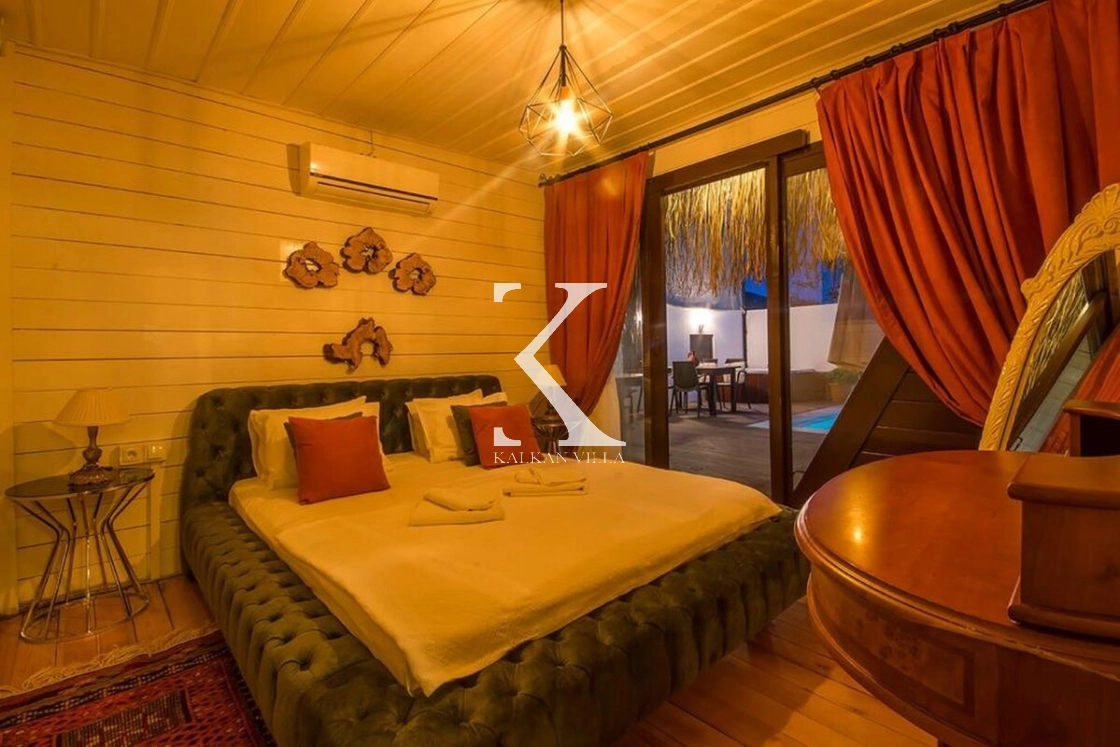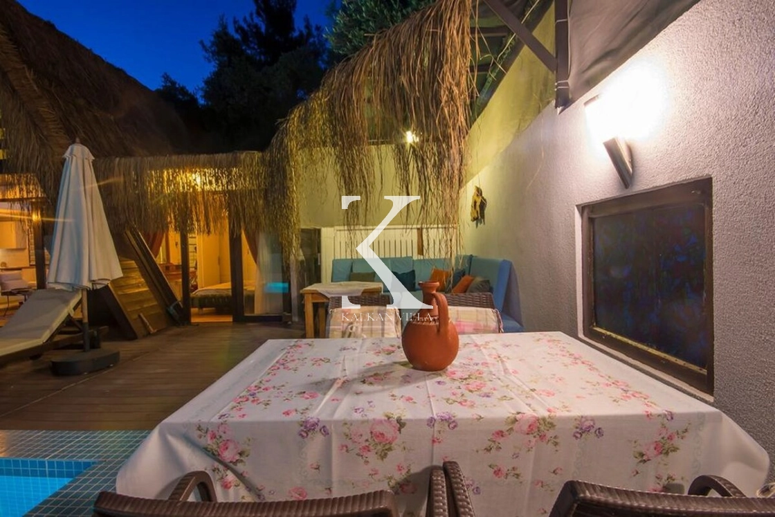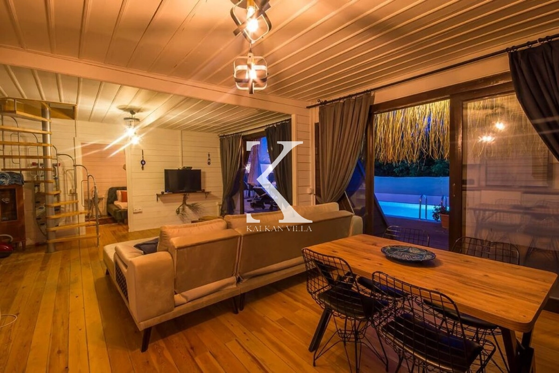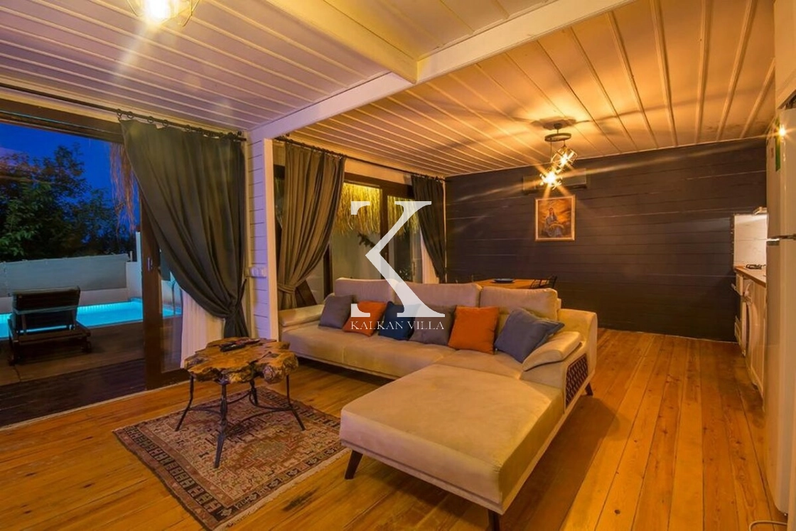 Kalkan’ın sessiz ve doğayla iç içe İslamlar bölgesinde yer alan Villa Muzo Duo, bungalov mimarisiyle dikkat çeken, konforlu ve doğa manzaralı özel bir tatil villasıdır. 🌿