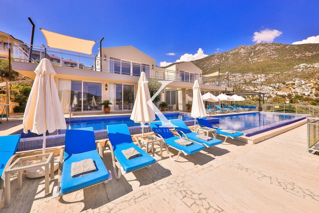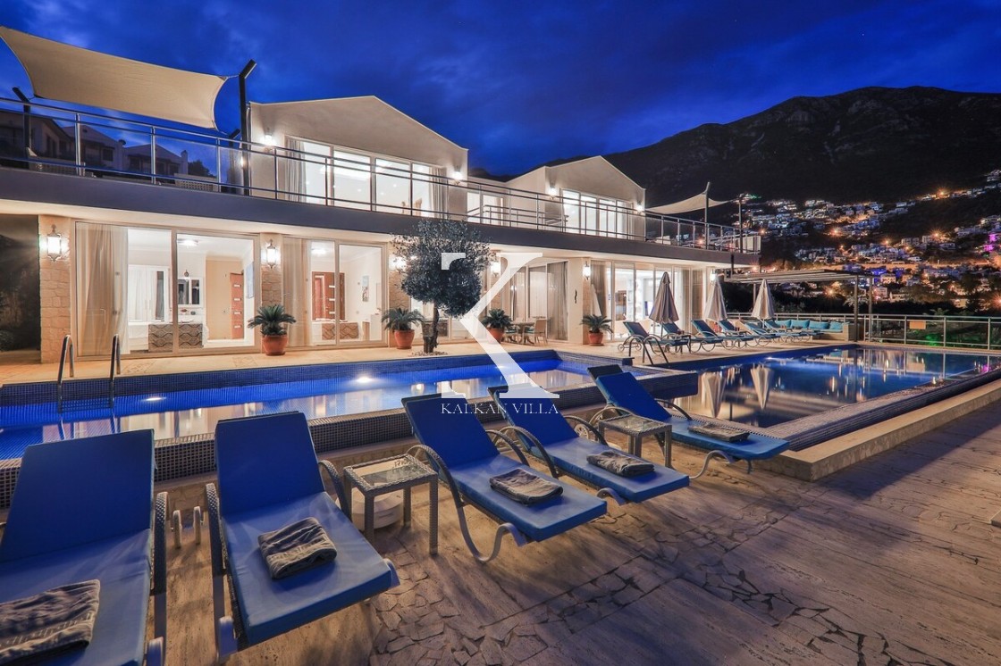 Kalkan Merkez’de, limana ve çarşıya yürüyüş mesafesinde konumlanan Villa Oasis, modern tasarımı, 6 yatak odası / 12 kişilik kapasitesi ve iki büyük özel havuzu ile geniş aileler ve arkadaş grupları için kusursuz bir seçenektir.