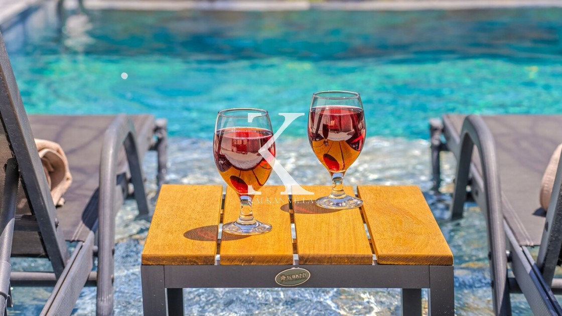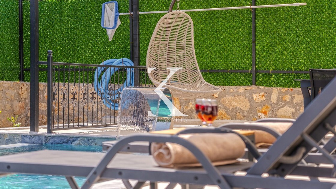Doğanın ortasında, korunaklı yapısıyla dışarıdan görünmeyen özel havuz alanı tam size göre. Güneşlenme şezlongları ve bahçe oturma grubu ile konfor tamamlanıyor.
