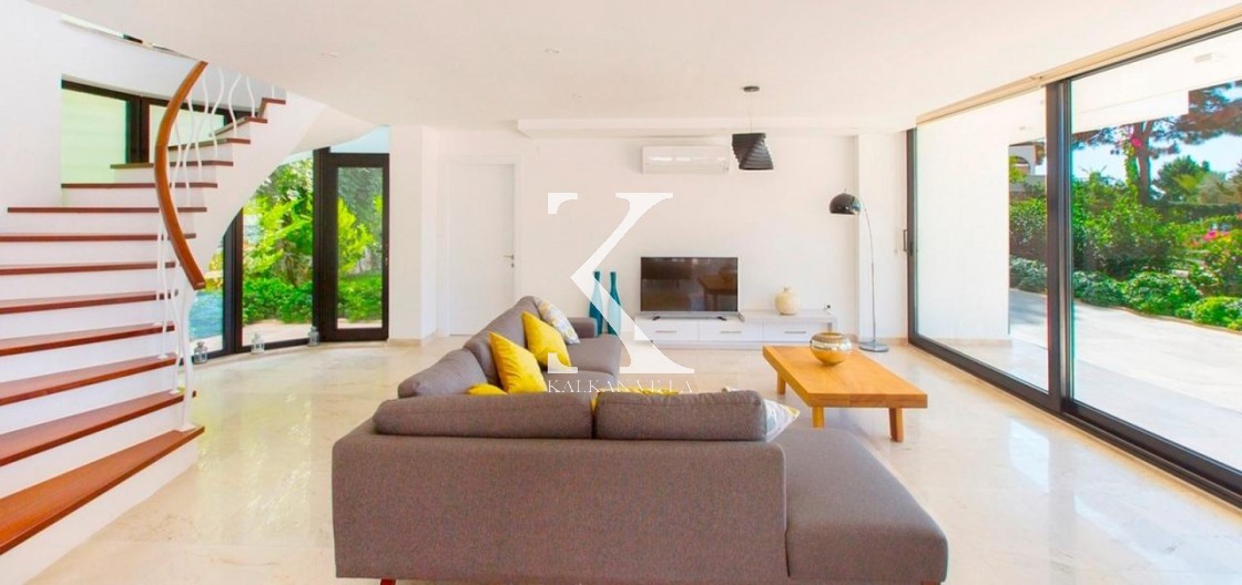 Kalkan’ın popüler plajına yakın konumda yer alan Villa Ozma, muhteşem deniz manzarası, geniş bahçesi ve modern mimarisiyle öne çıkan özel bir tatil villasıdır.