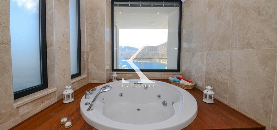 5 yatak odası • 10 kişi kapasiteli • Deniz & Kalkan manzaralı • Sonsuzluk havuzlu • Jakuzi