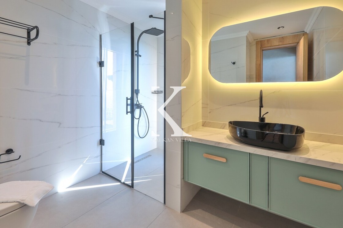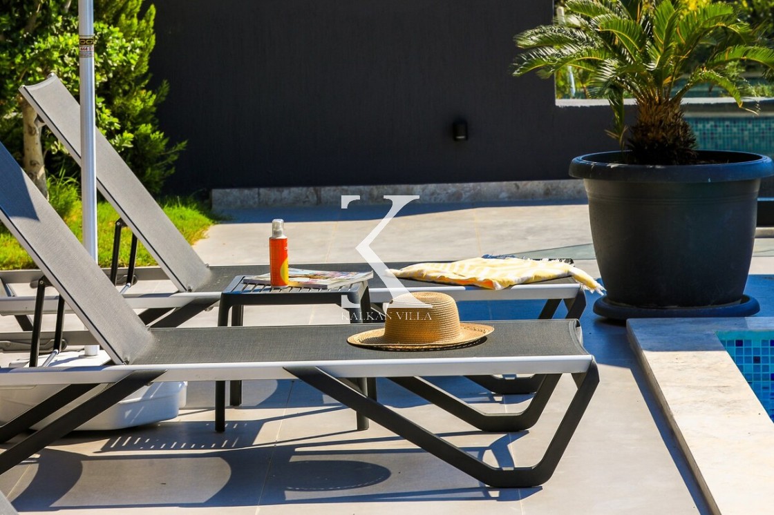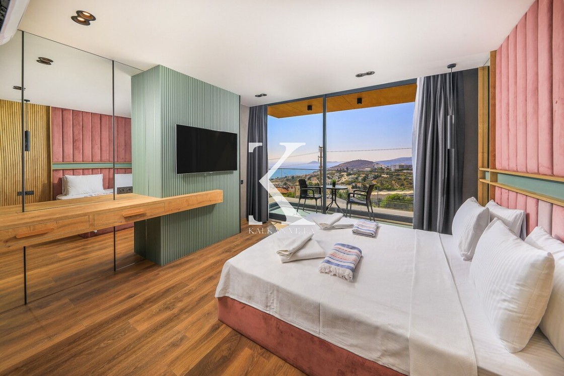 Doğa ve deniz manzarasına hakim Kalkan Kızıltaş bölgesinde konumlanan Villa Palmi, 2022 yapımı modern bir villadır.