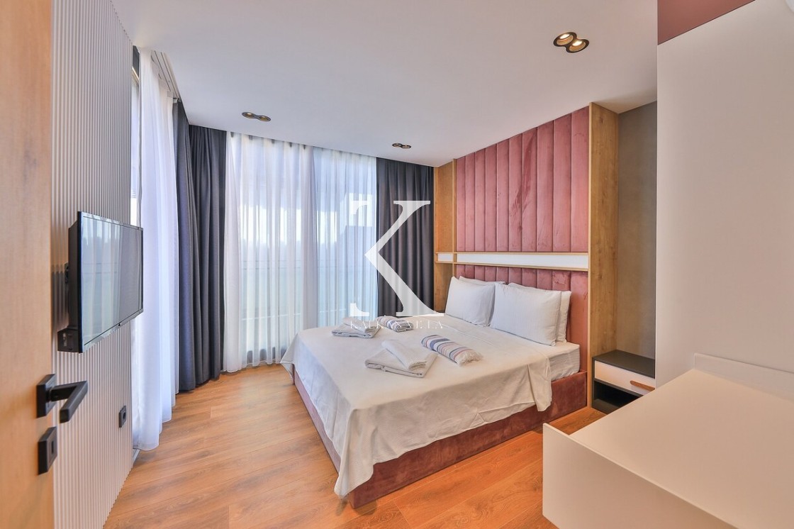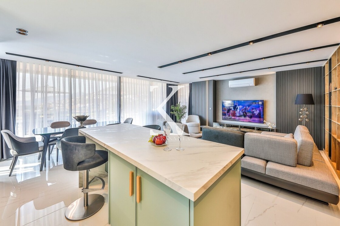 Konforlu oturma grubu, TV, klima, sehpa; havuz terasına direkt çıkış.