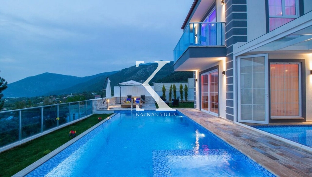 Doğayla iç içe konumda mahremiyet, lüks ve konforu buluşturan, 3 süit yatak odalı – 6 kişi kapasiteli şık villa. Kapalı (ısıtmalı) havuz, tam korunaklı bahçe & açık havuz, özel spor odası (koşu bandı + çok amaçlı kondisyon aleti + langırt) ile 4 mevsim tatil.