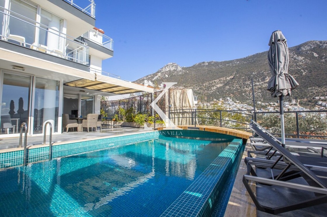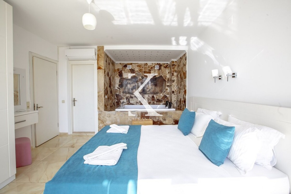Her odasından, mutfağından ve geniş havuz terasından Kalkan koyunun büyüleyici manzarasını seyredebilirsiniz.