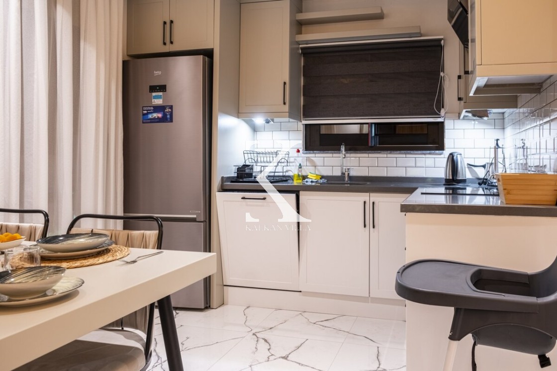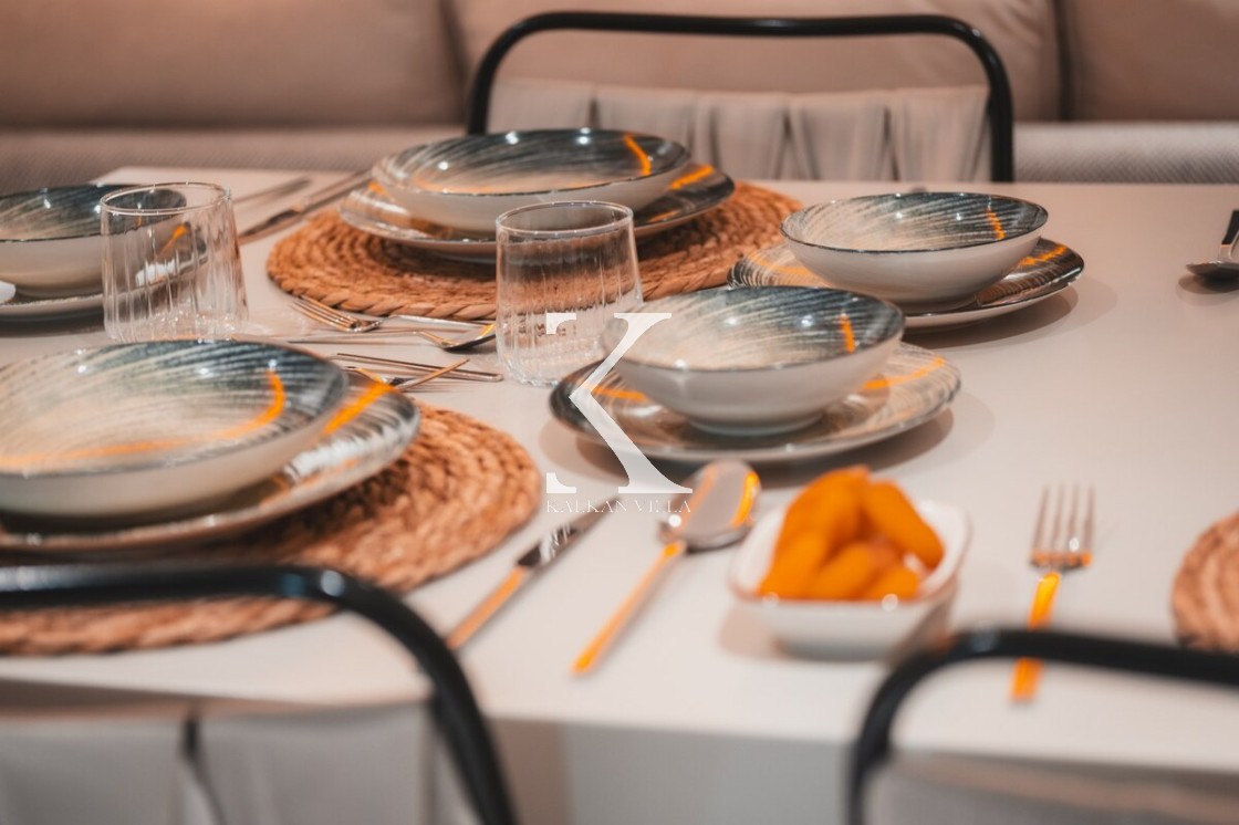 Ev konforunda hazırlanmış modern Amerikan mutfak, ihtiyacınız olan tüm araç-gereçlerle donatılmıştır: