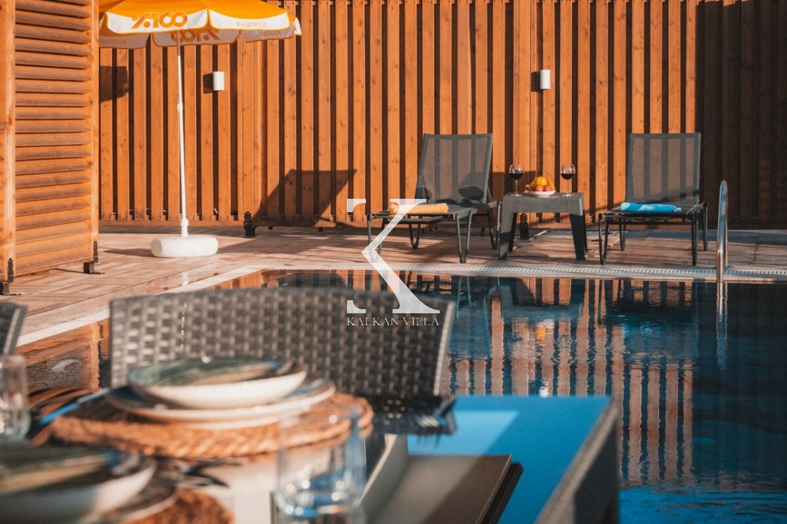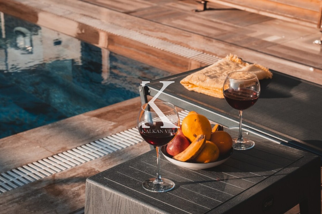 Villanın doğa manzaralı bahçesi ve özel havuzu, sessizliğin ve dinginliğin tadını çıkarabileceğiniz keyifli bir atmosfer sunar.