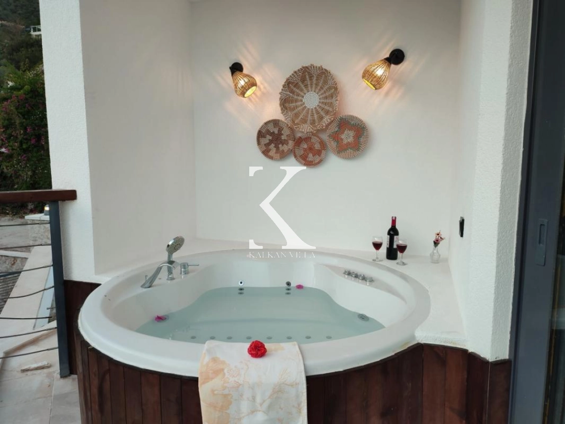 Villamızın geniş bahçesinde özel yüzme havuzu, şezlonglar, güneş şemsiyeleri, oturma köşesi, salıncak, barbekü ve açık hava yemek masası bulunmaktadır. Üst katta yer alan terasta ise jakuzide deniz manzarasının keyfini çıkarabilir, gün batımını izleyerek tatilinize unutulmaz anlar katabilirsiniz.