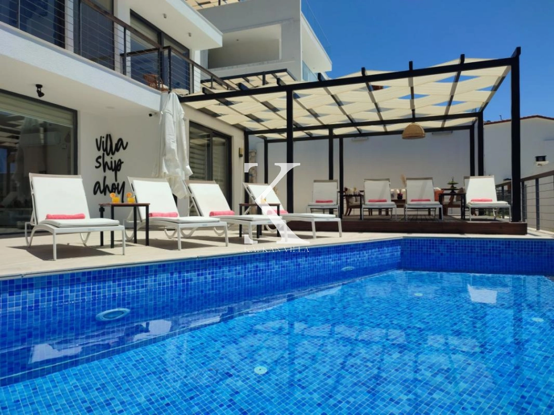 Villa Ship Ahoy, Kalkan’ın en prestijli bölgelerinden Kalamar Koyu’nda yer alan, 4 yatak odalı ve 8 kişilik konaklama kapasitesine sahip lüks bir tatil villasıdır. Panoramik deniz manzarası, geniş yaşam alanları ve ayrıcalıklı konumu ile kalabalık aileler ve arkadaş grupları için mükemmel bir seçenektir.