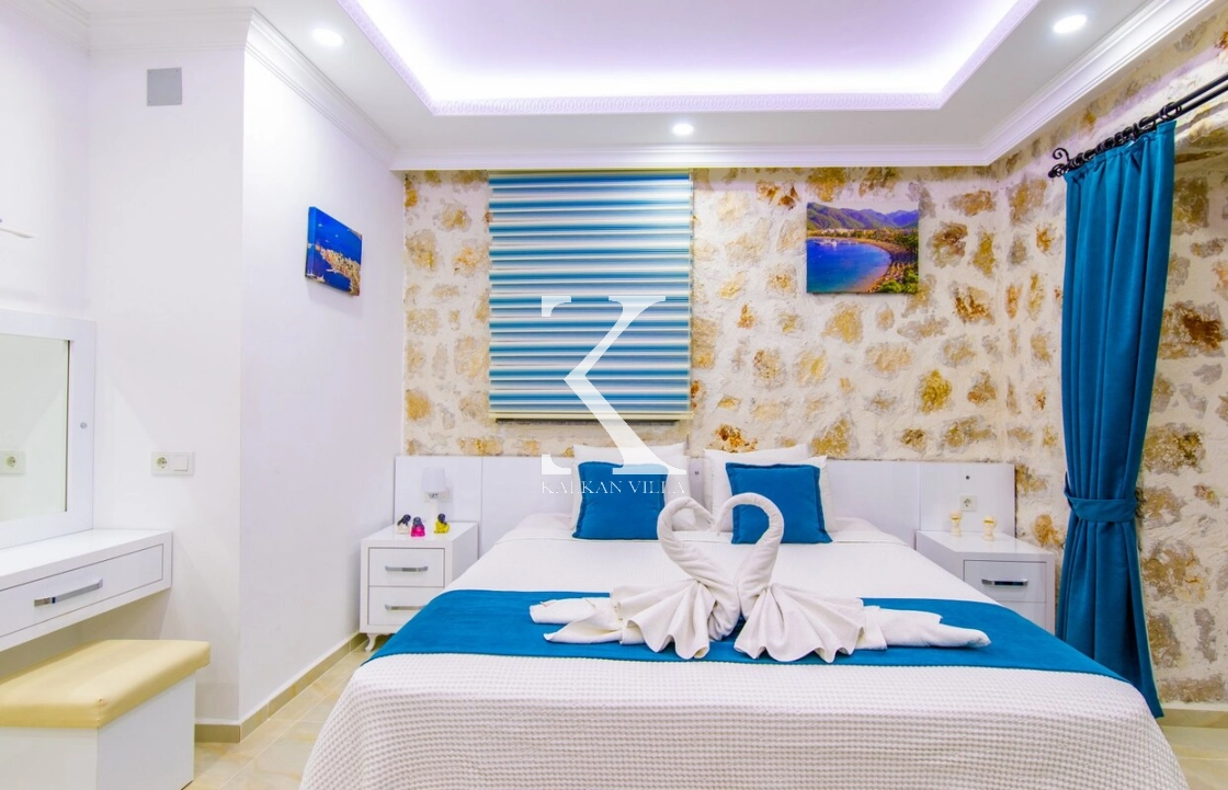 2 yatak odalı ve 4 kişilik konaklama kapasitesine sahip olan bu zarif villa, balayı çiftleri ve muhafazakâr aileler için mükemmel bir tatil alternatifidir.