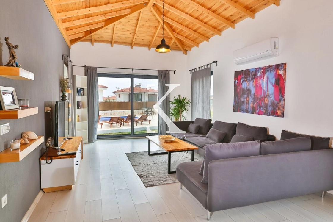 Şehir gürültüsünden uzak, temiz hava ve kuş sesleri eşliğinde huzurlu bir tatil sunan villa; çitlerle çevrili ve dışarıdan görünmeyecek şekilde tasarlanmış yapısıyla özellikle muhafazakâr aileler için güvenli ve konforlu bir ortam sağlar.