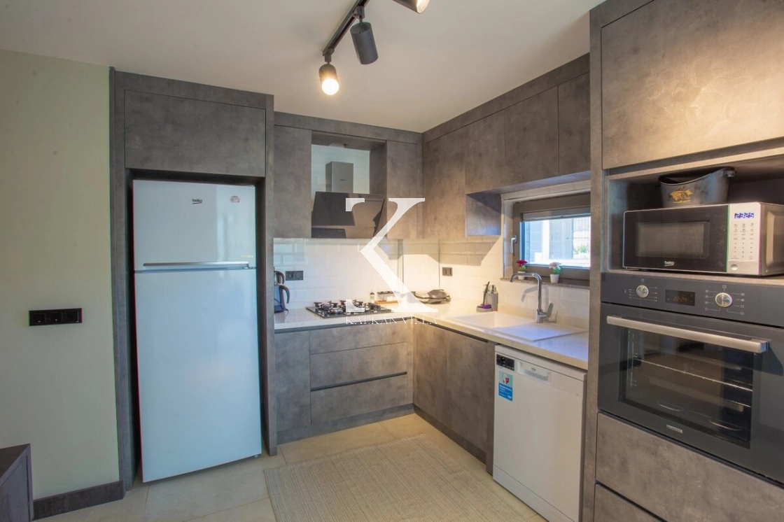 Villa Vural Kaş 1’de modern ve şık tasarıma sahip Amerikan mutfak bulunmaktadır. Gri renkli dolaplarıyla modern bir görünüm sunan mutfakta tatil boyunca ihtiyaç duyabileceğiniz tüm ekipmanlar yer almaktadır.