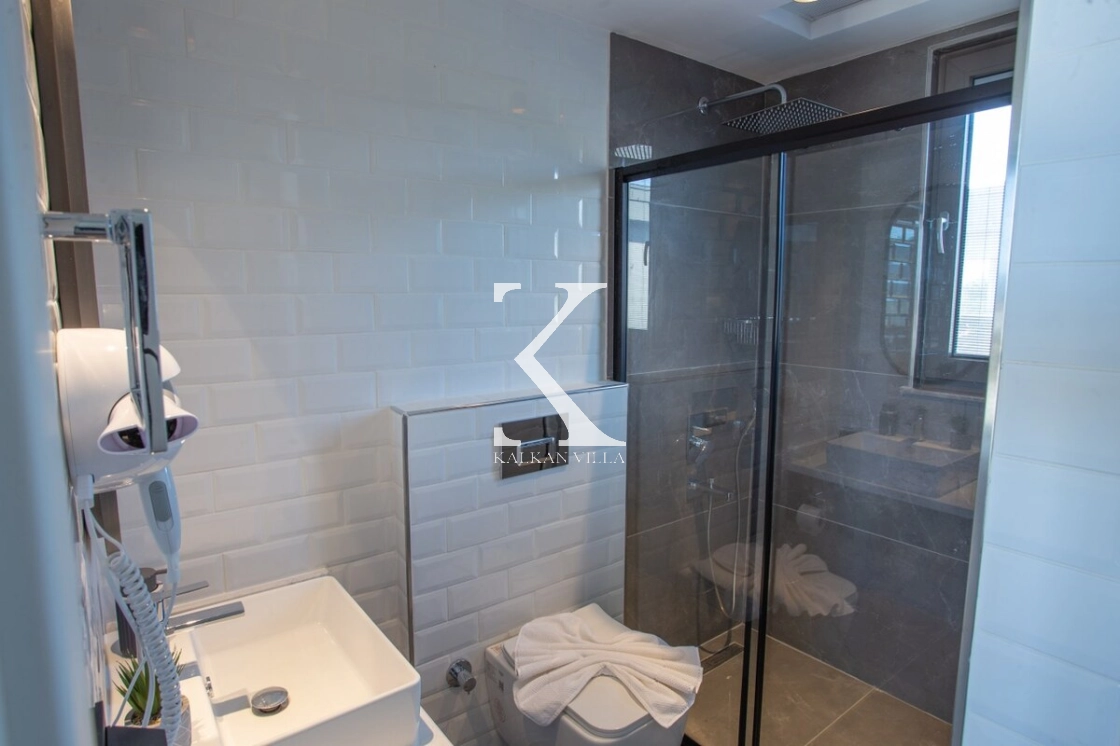 Çift kişilik suit yatak, komodin, elbise dolabı, makyaj masası, klima, banyo ve tuvalet bulunmaktadır.