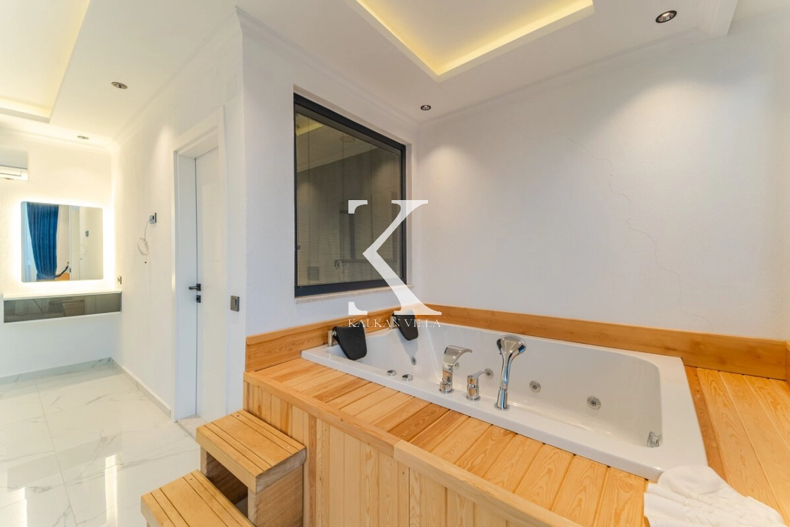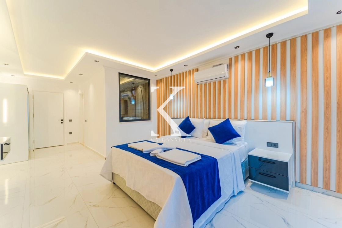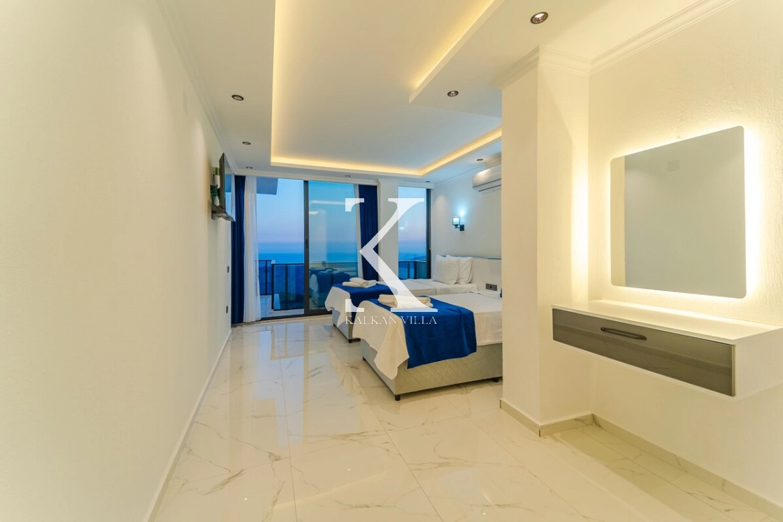 Villanın son 600 metresi dik yokuş olup, bu konum sayesinde Kalkan Körfezi’nin büyüleyici manzarası tüm güzelliğiyle gözler önüne serilmektedir.