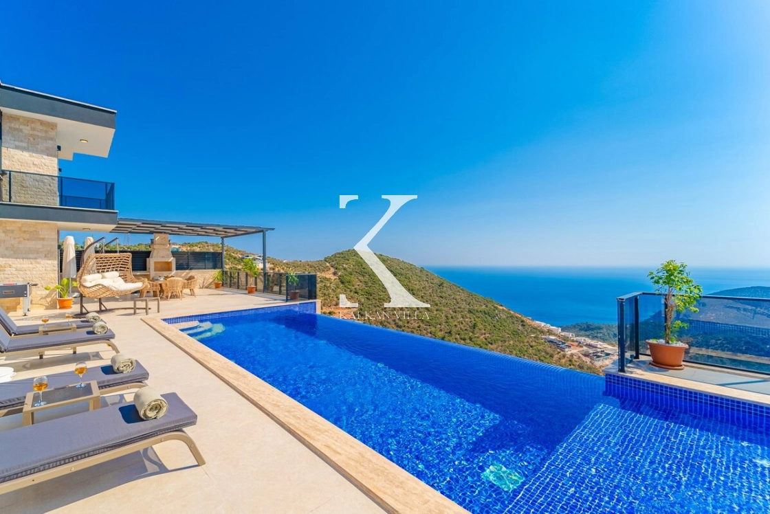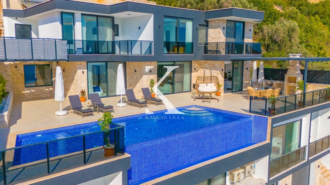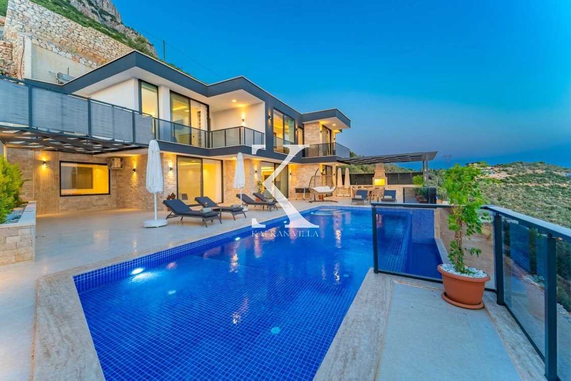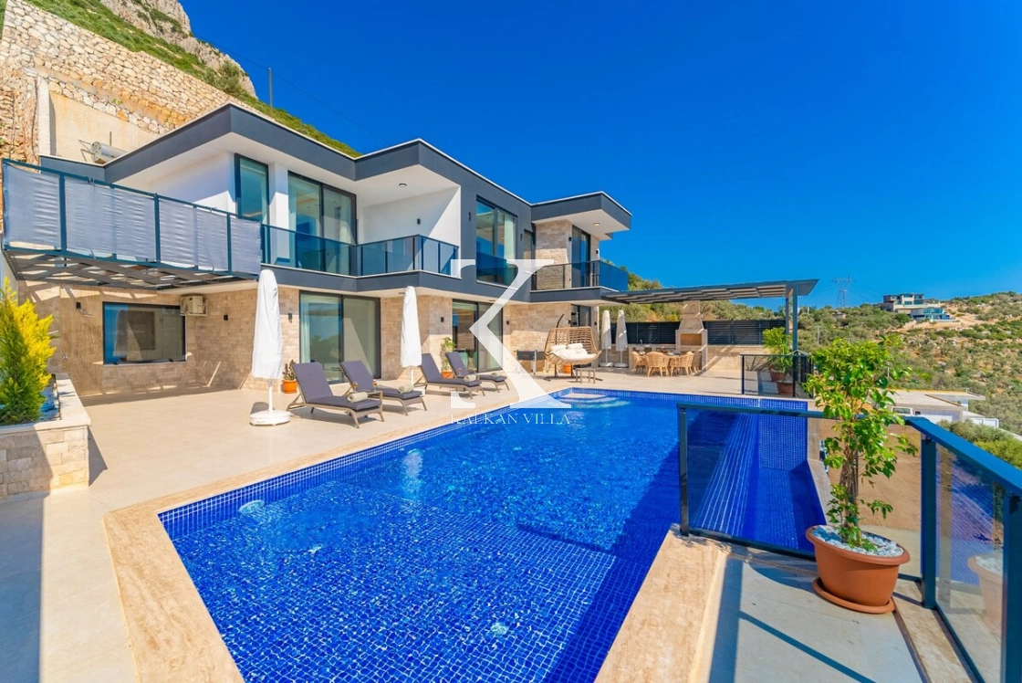 Kalkan’ın muhteşem deniz ve adalar manzarasına hâkim Kördere – Ordu bölgesinde yer alan Villa Yeşim, lüks detaylarıyla öne çıkan özel bir tatil villasıdır.