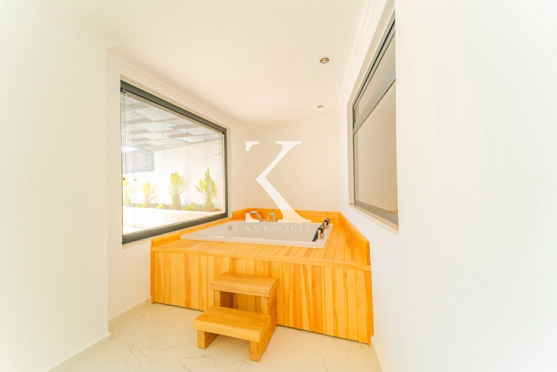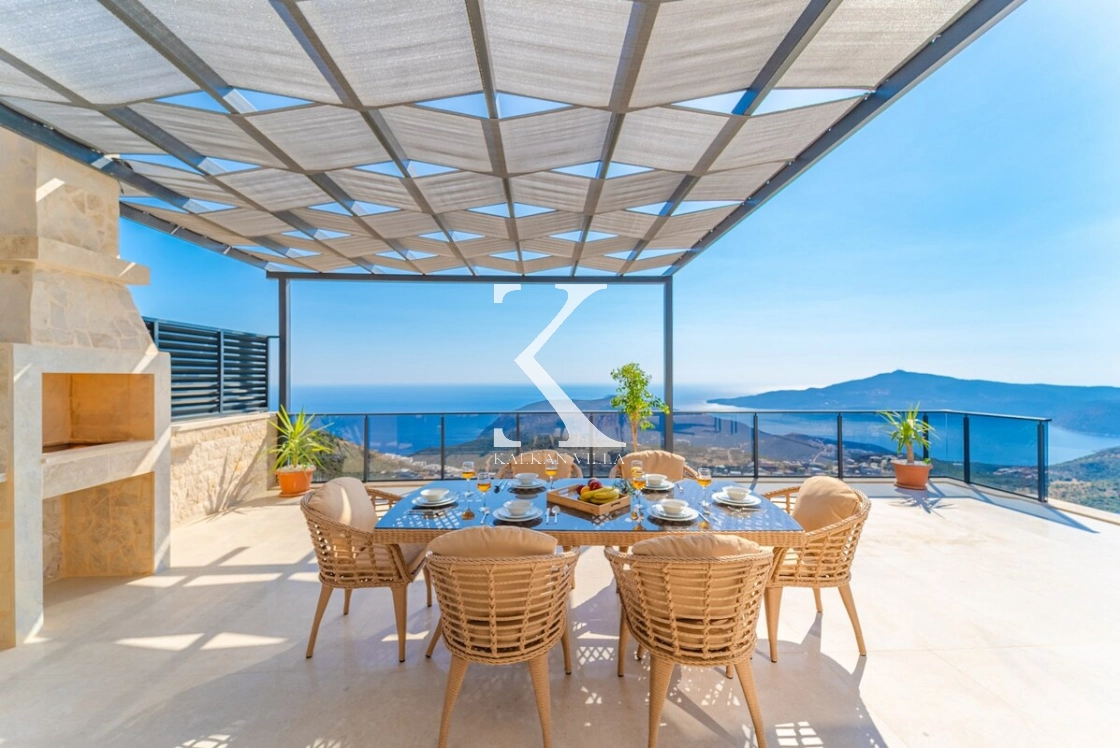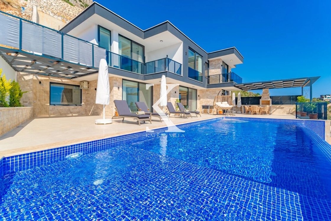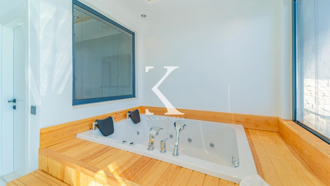 Kalkan’ın muhteşem deniz ve adalar manzarasına hâkim Kördere – Ordu bölgesinde yer alan Villa Yeşim, lüks detaylarıyla öne çıkan özel bir tatil villasıdır.