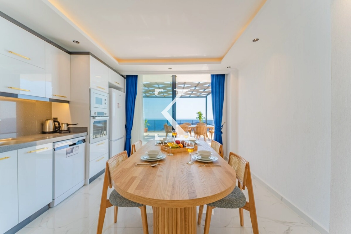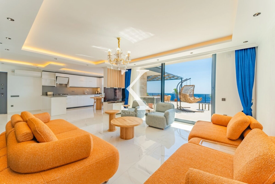 Geniş, aydınlık ve deniz manzaralı salonda: