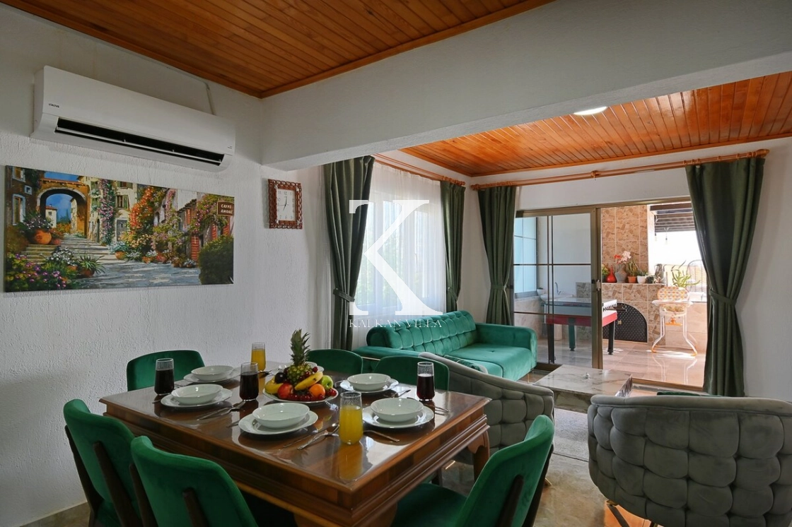 Doğa ile iç içe konumlanan villamız, şehir hayatının stresinden uzaklaşıp sessiz ve izole bir ortamda dinlenmek isteyen misafirler için ideal bir seçenektir. Kalkan merkeze araçla yaklaşık 15–20 dakika, Saklıkent Milli Parkı (Saklıkent Kanyonu)’na ise yaklaşık 30 dakika mesafede yer almaktadır.