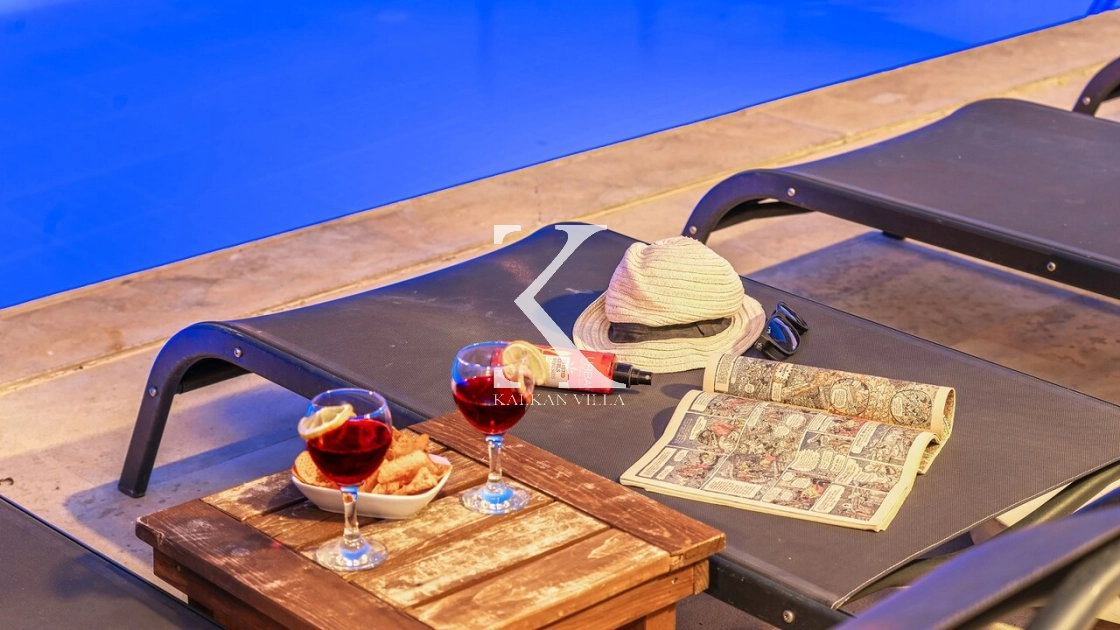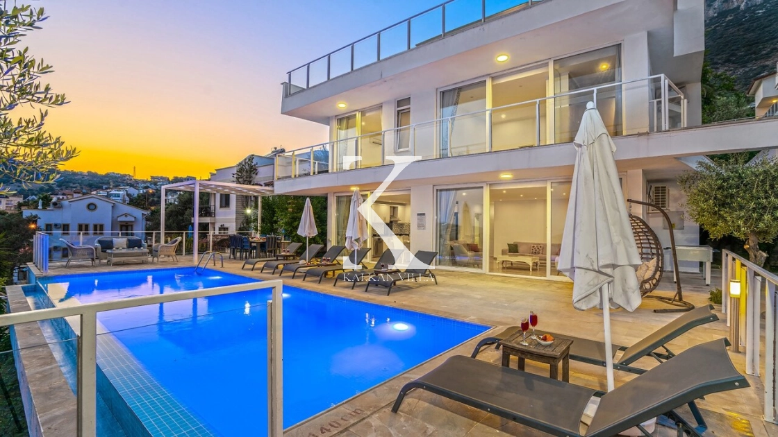 Villa Zeytouna, Kalkan’ın en popüler bölgelerinden biri olan Kızıltaş mevkiinde, geniş yaşam alanları, modern mimarisi ve etkileyici deniz manzarasıyla öne çıkan lüks bir tatil villasıdır. Kalkan merkeze ve plaja sadece 1 km mesafede bulunan villa, hem merkezi konumda olmak hem de sakin bir tatil geçirmek isteyen misafirler için ideal bir seçenek sunmaktadır.
