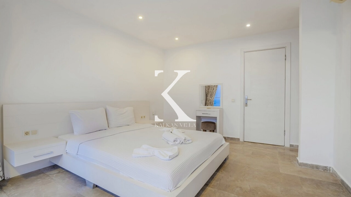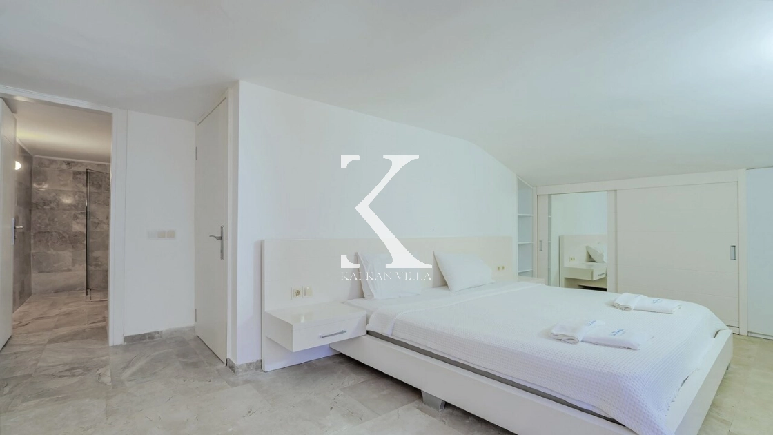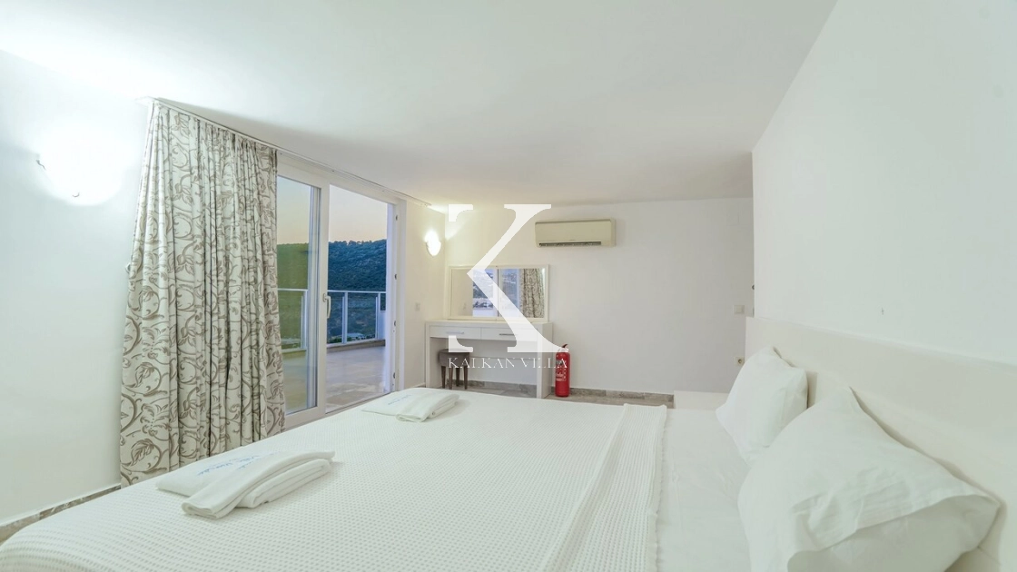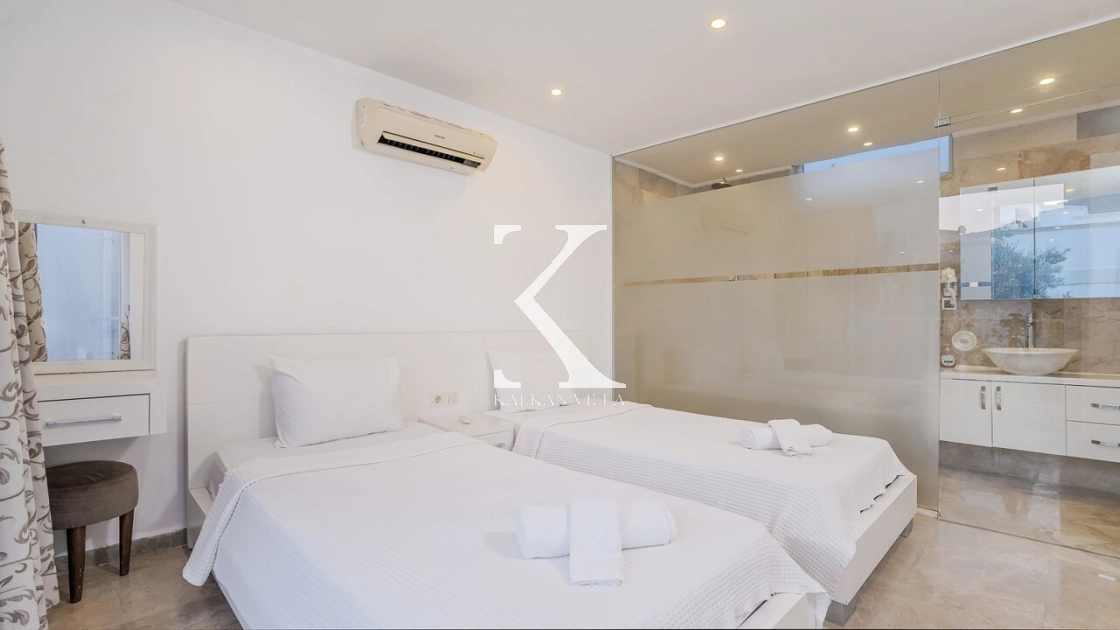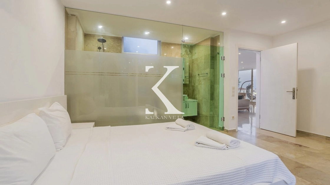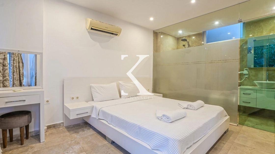 Villadaki tüm yatak odaları klimalı ve özel banyoludur. Bazı odaların deniz manzaralı balkonlara açılması, sabahları Akdeniz manzarasıyla güne başlamanıza olanak tanır. Bu detay, tatilinize ayrıcalıklı bir atmosfer kazandırır.