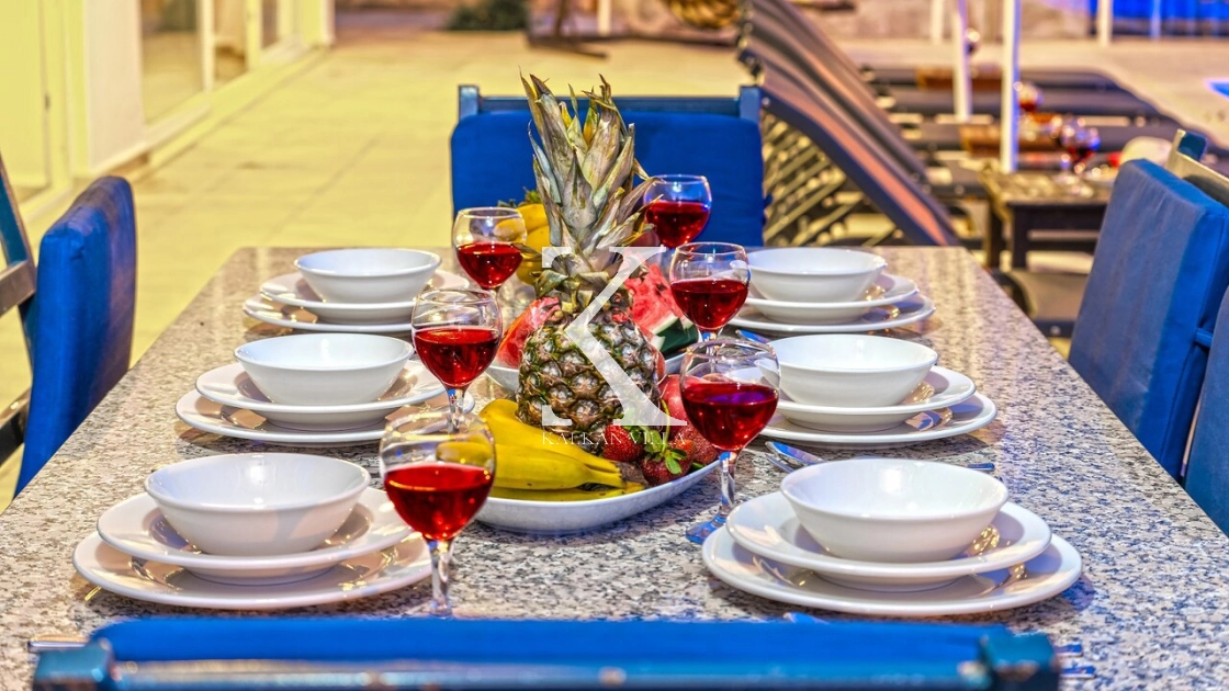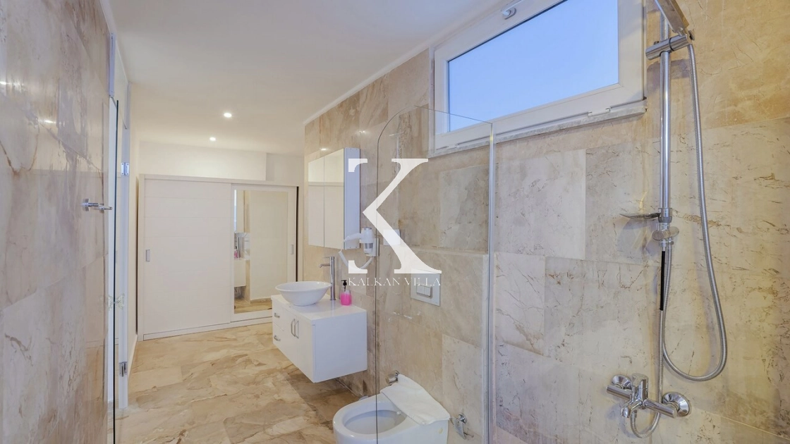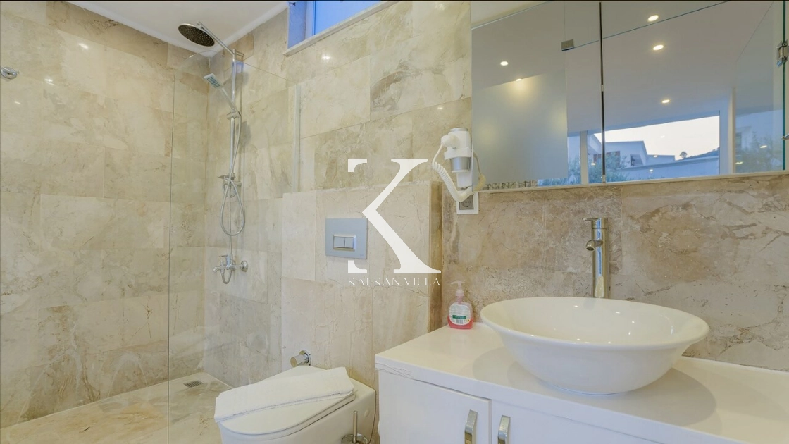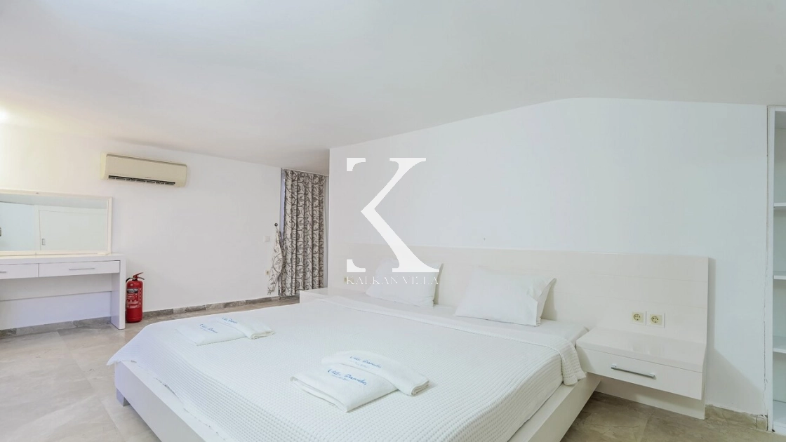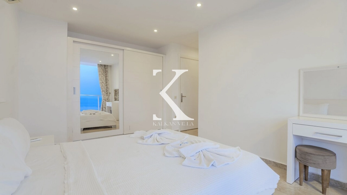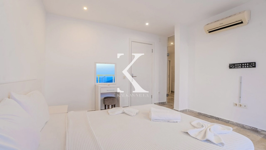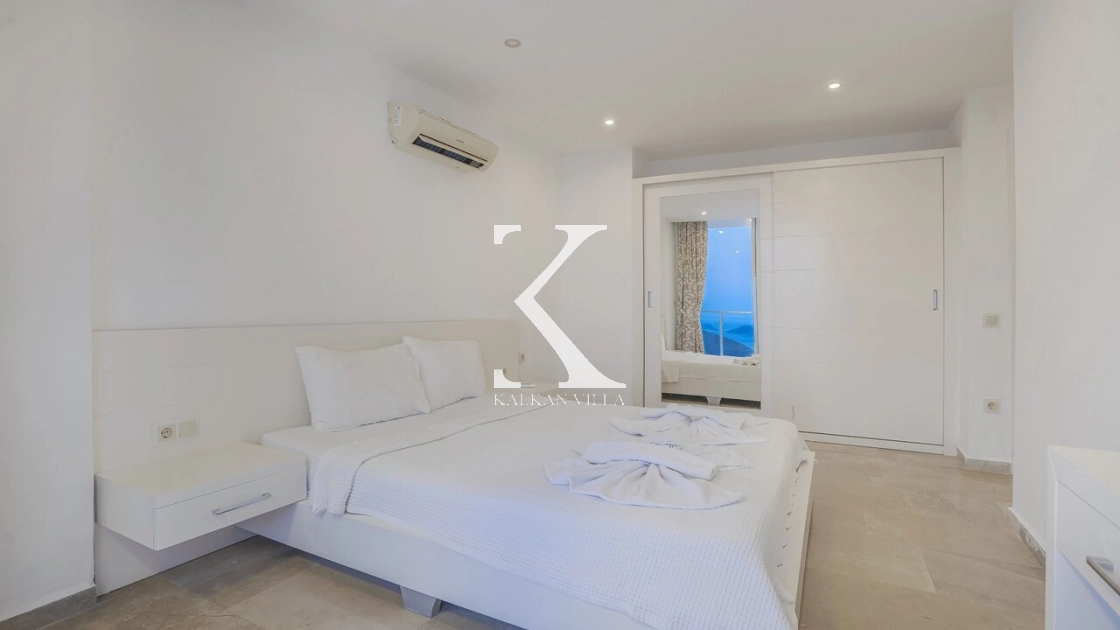 Villadaki tüm yatak odaları klimalı ve özel banyoludur. Bazı odaların deniz manzaralı balkonlara açılması, sabahları Akdeniz manzarasıyla güne başlamanıza olanak tanır. Bu detay, tatilinize ayrıcalıklı bir atmosfer kazandırır.