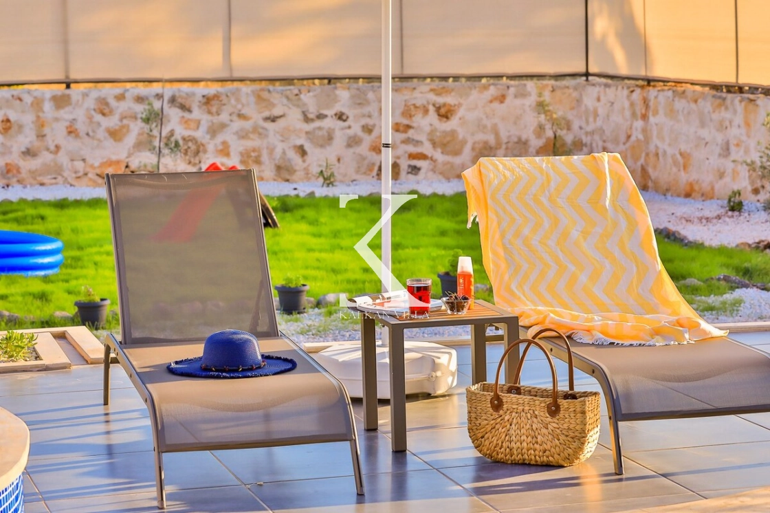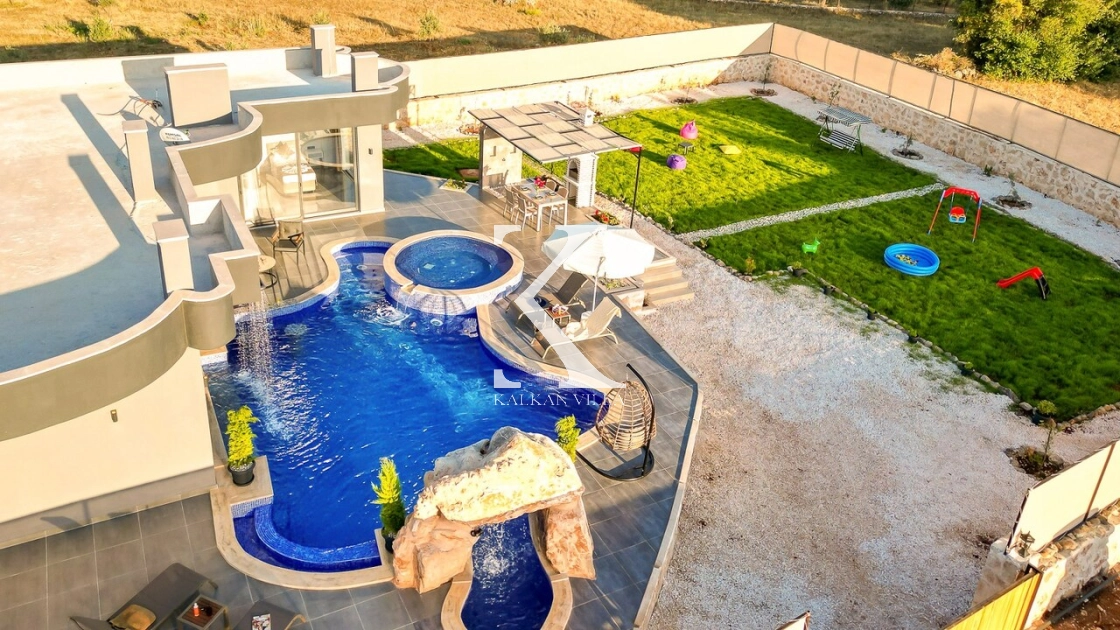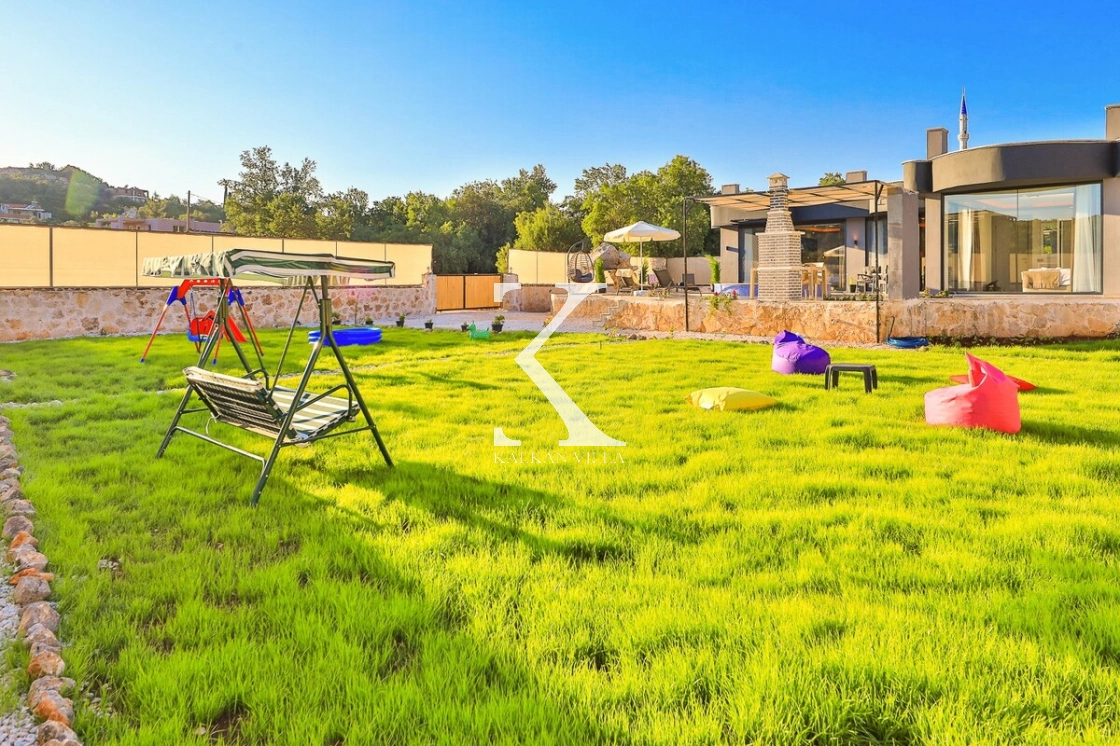 Villanın geniş ve ferah bahçesinde; özel yüzme havuzu, çocuk havuzu, şezlonglar, yemek masası, barbekü alanı, oturma köşesi, salıncak ve mini çocuk oyun alanı bulunmaktadır. Çocuklar güvenle oyun oynarken, siz de gözlerden uzak bir şekilde yüzmenin ve güneşlenmenin keyfini çıkarabilirsiniz.