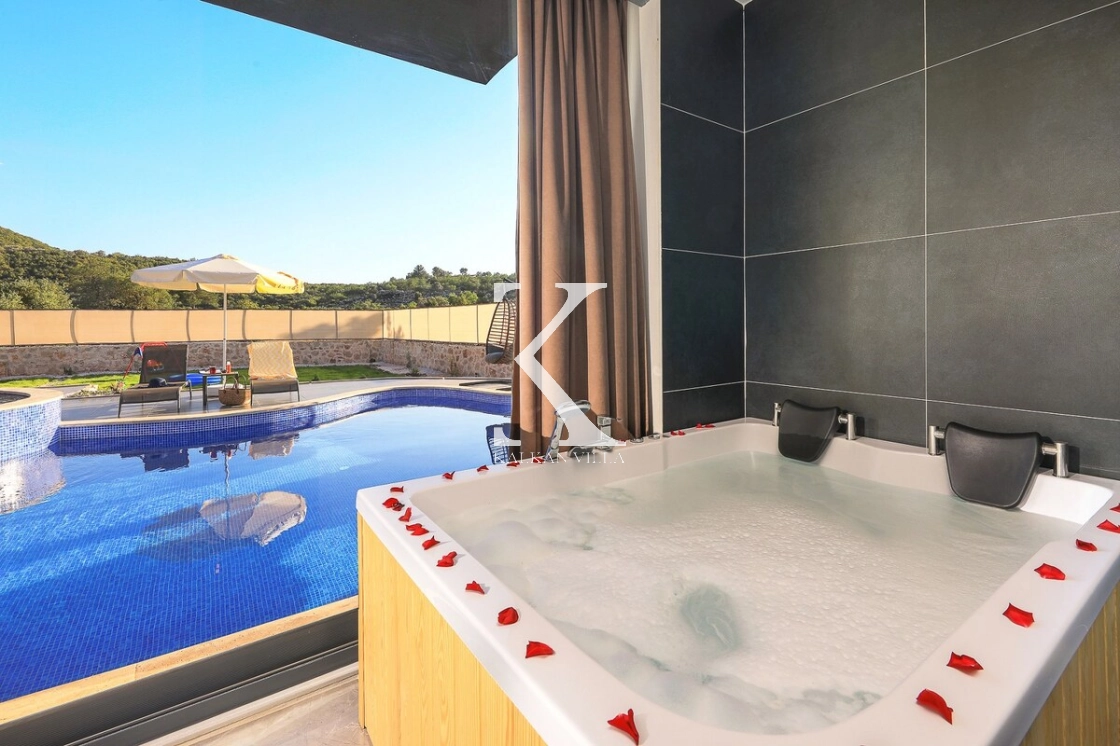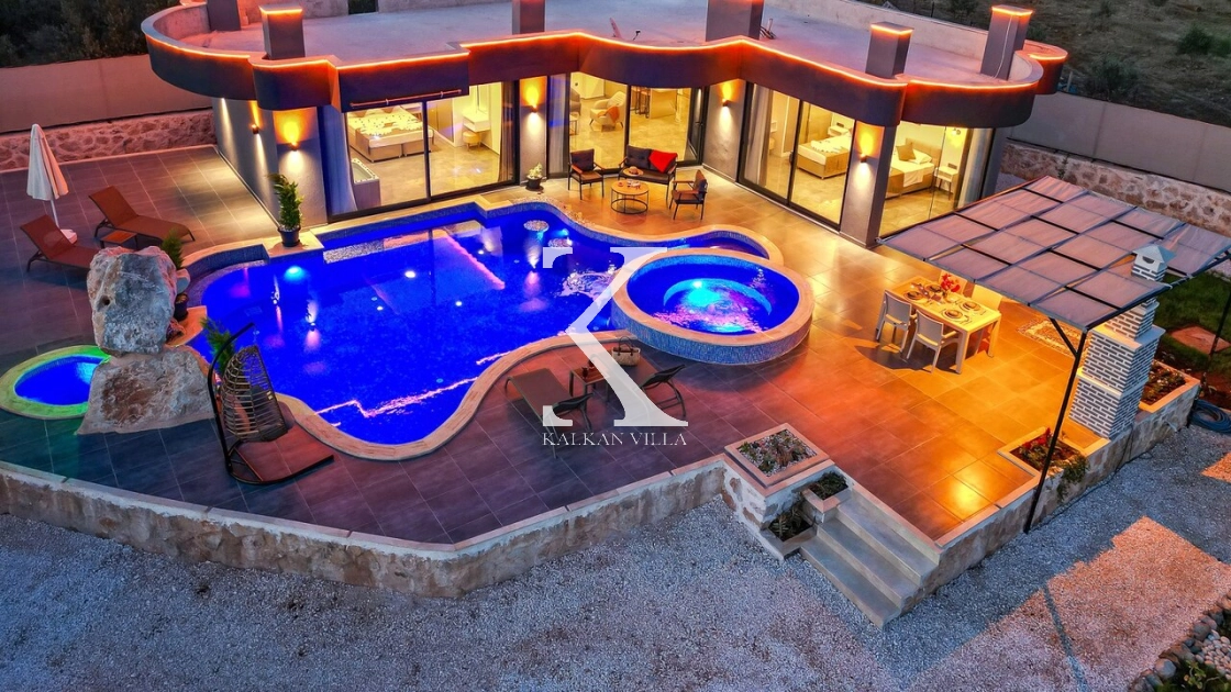 Oldukça lüks ve modern bir tasarıma sahip olan villanın yatak odalarından birinde yer alan jakuzi, tatilinize ekstra konfor ve keyif katar. Şehir hayatının kalabalığı ve gürültüsünden uzak, huzurlu ve güvenli bir tatil arıyorsanız Villa Agarta, Kaş’ta unutulmaz bir tatil deneyimi sunmaktadır.