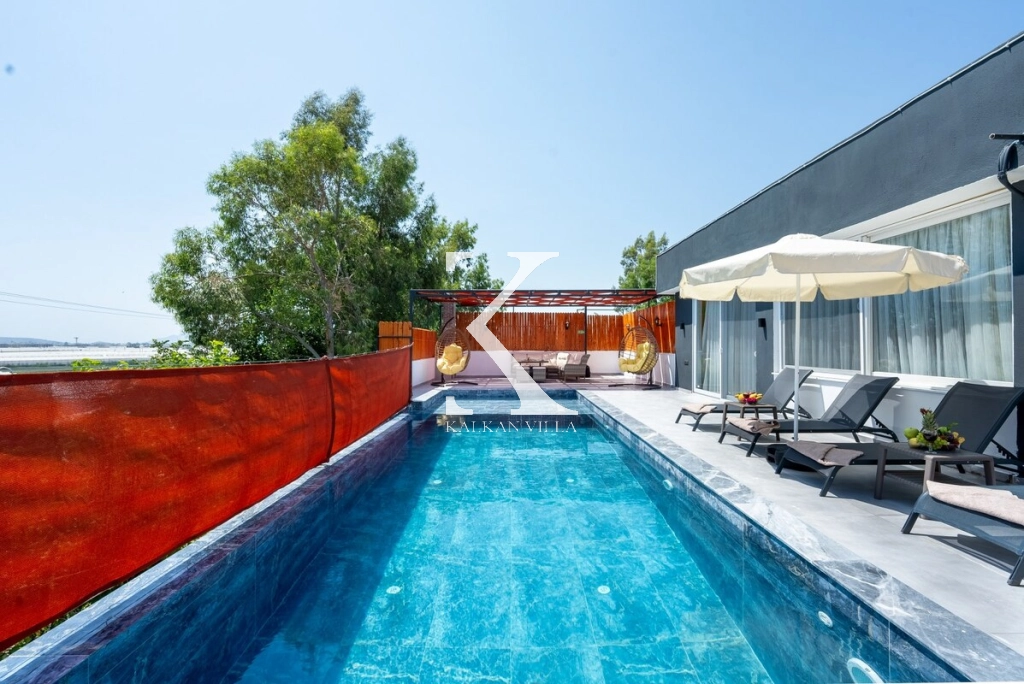 Doğayla iç içe, korunaklı yapıda, 3 yatak odalı – 6 kişilik, jakuzili modern villa. Sakin konumu, özel havuzu ve geniş yaşam alanlarıyla balayı çiftleri, muhafazakâr ve çekirdek aileler için ideal.