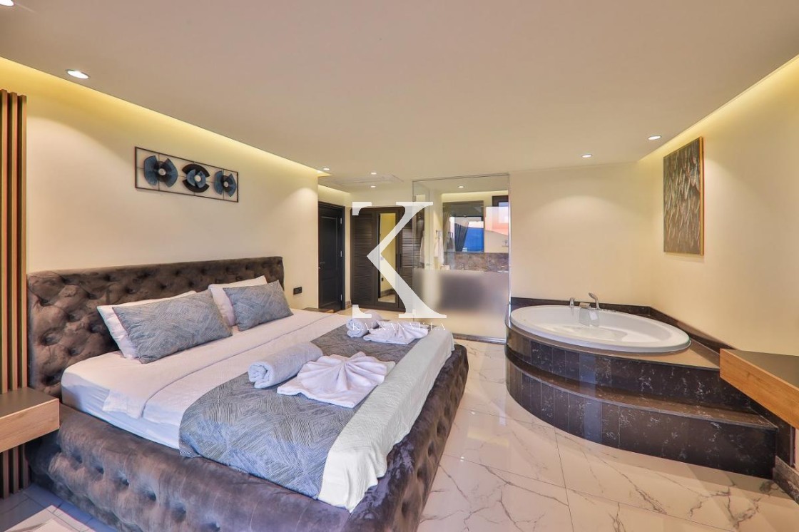 5. Çift kişilik yatak, dolap, komodin, makyaj masası, klima, TV, jakuzi