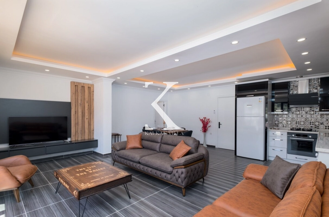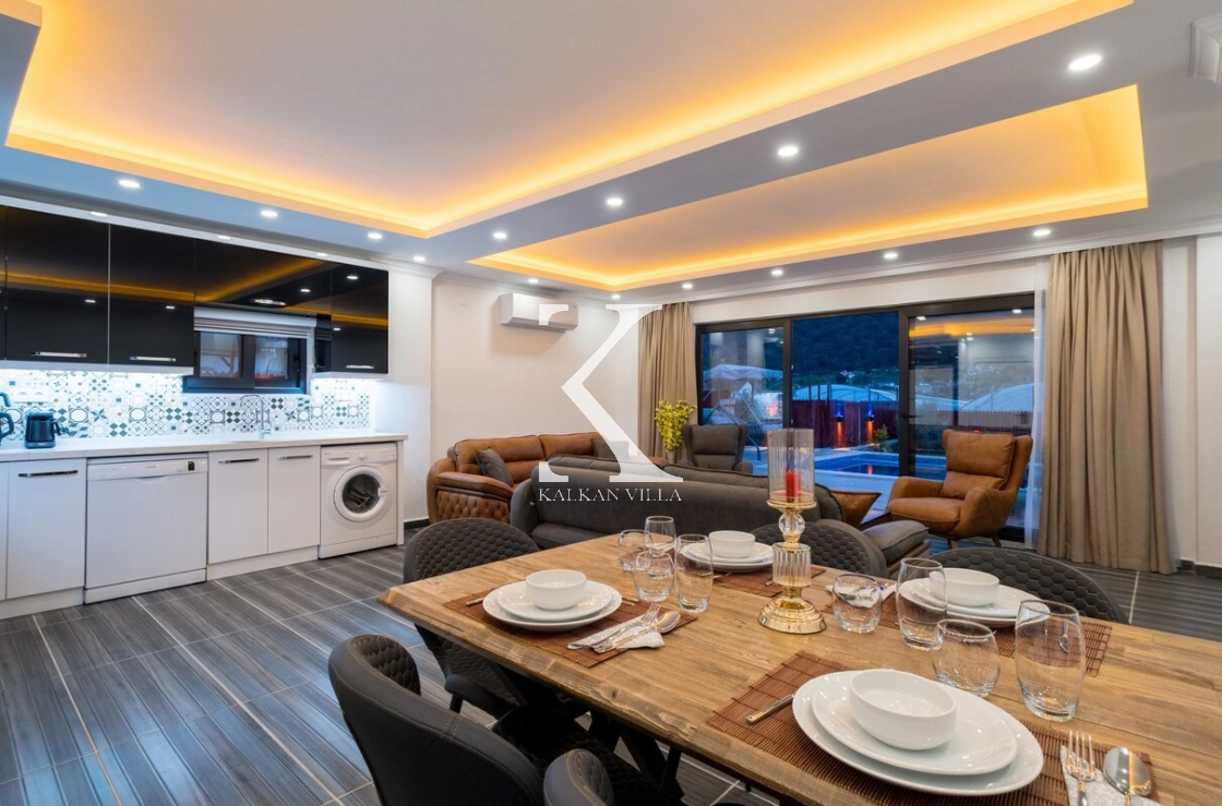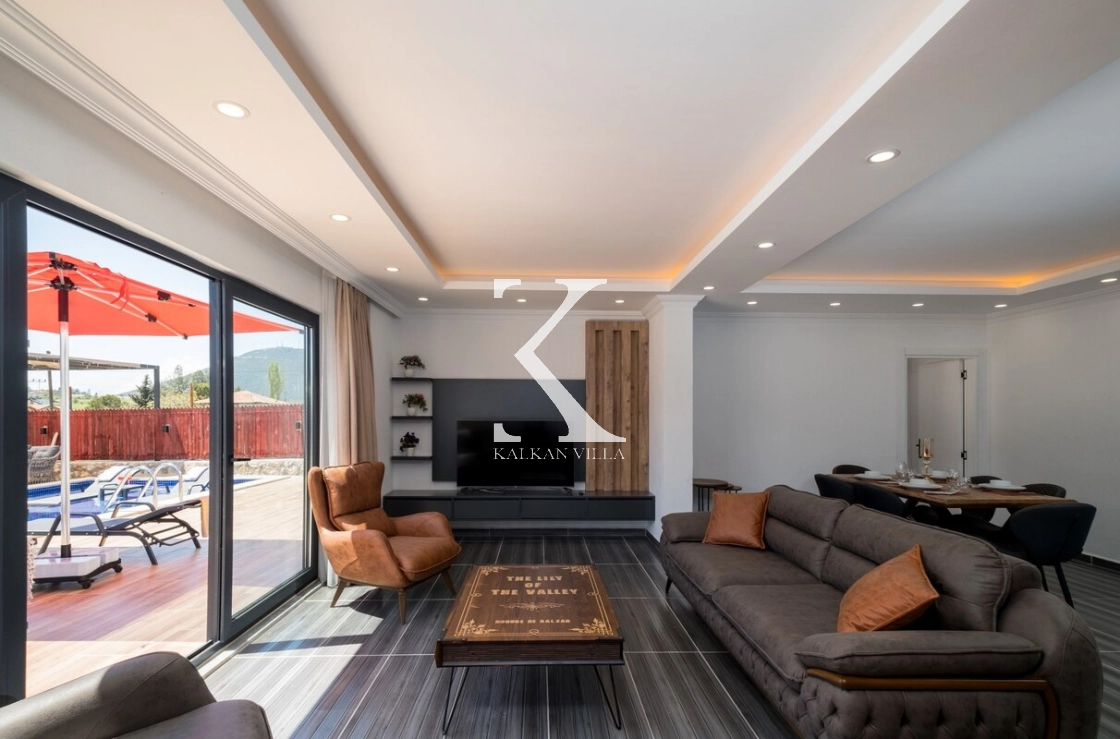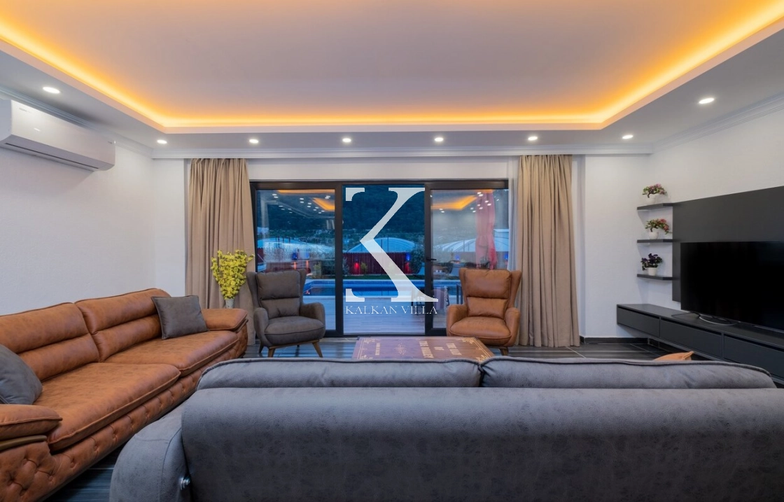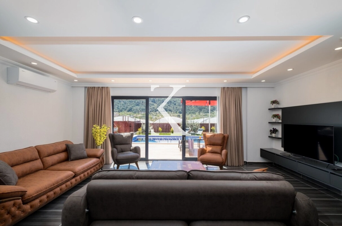Villanın salonu aydınlık ve ferah bir yaşam alanı sunmaktadır.